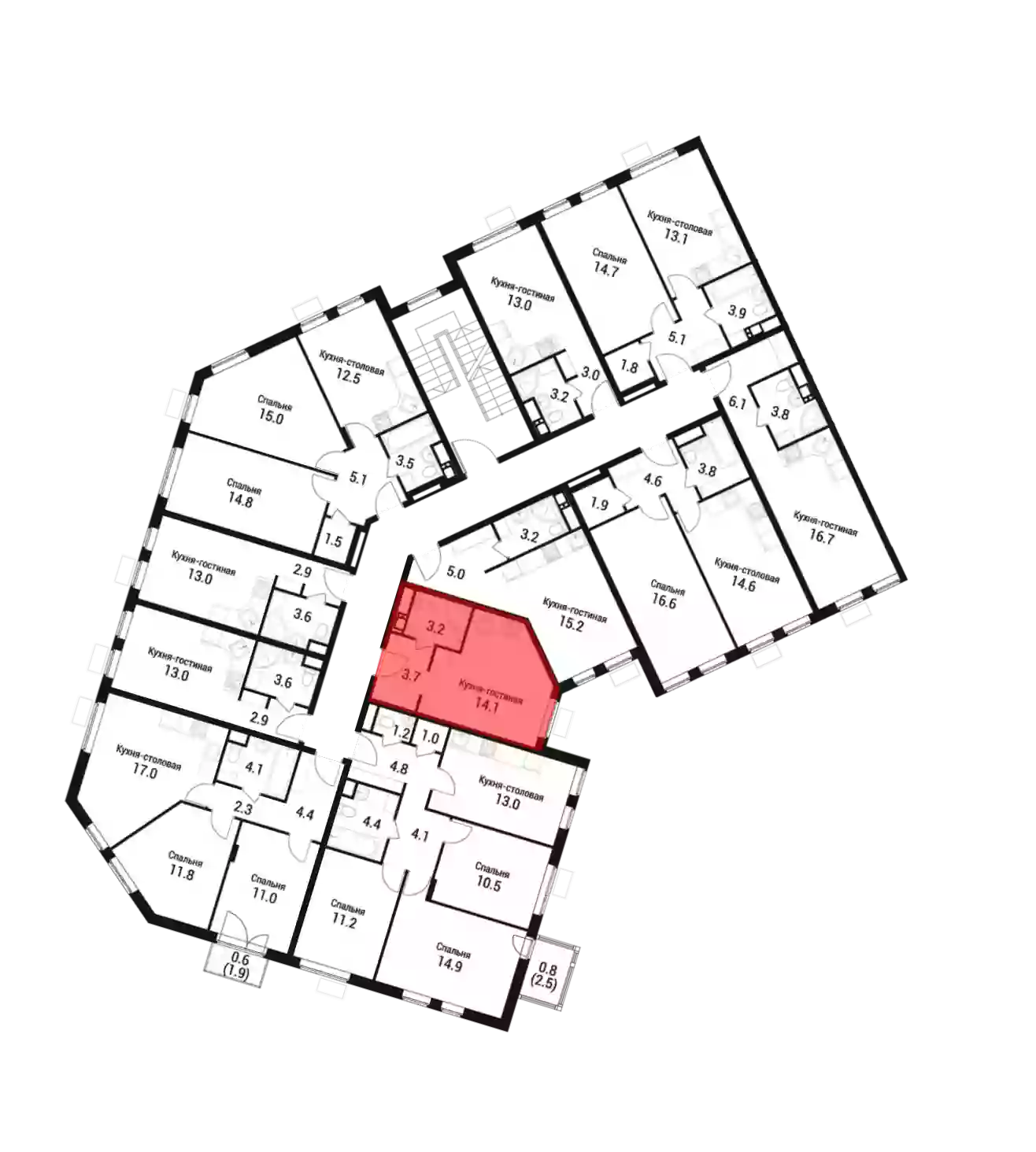 - Жилая площадь 14.1 м²