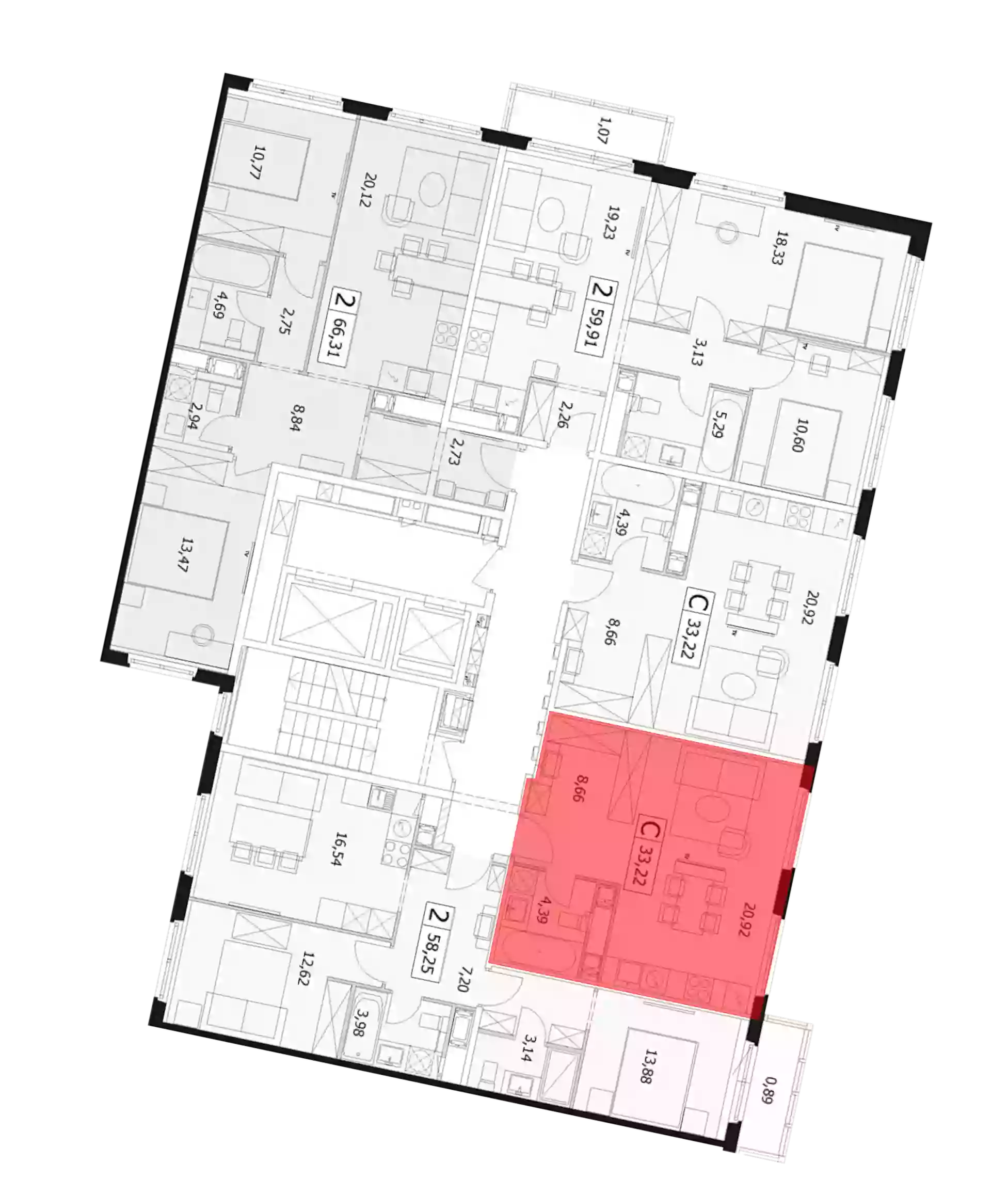 - Жилая площадь 20.92 м²