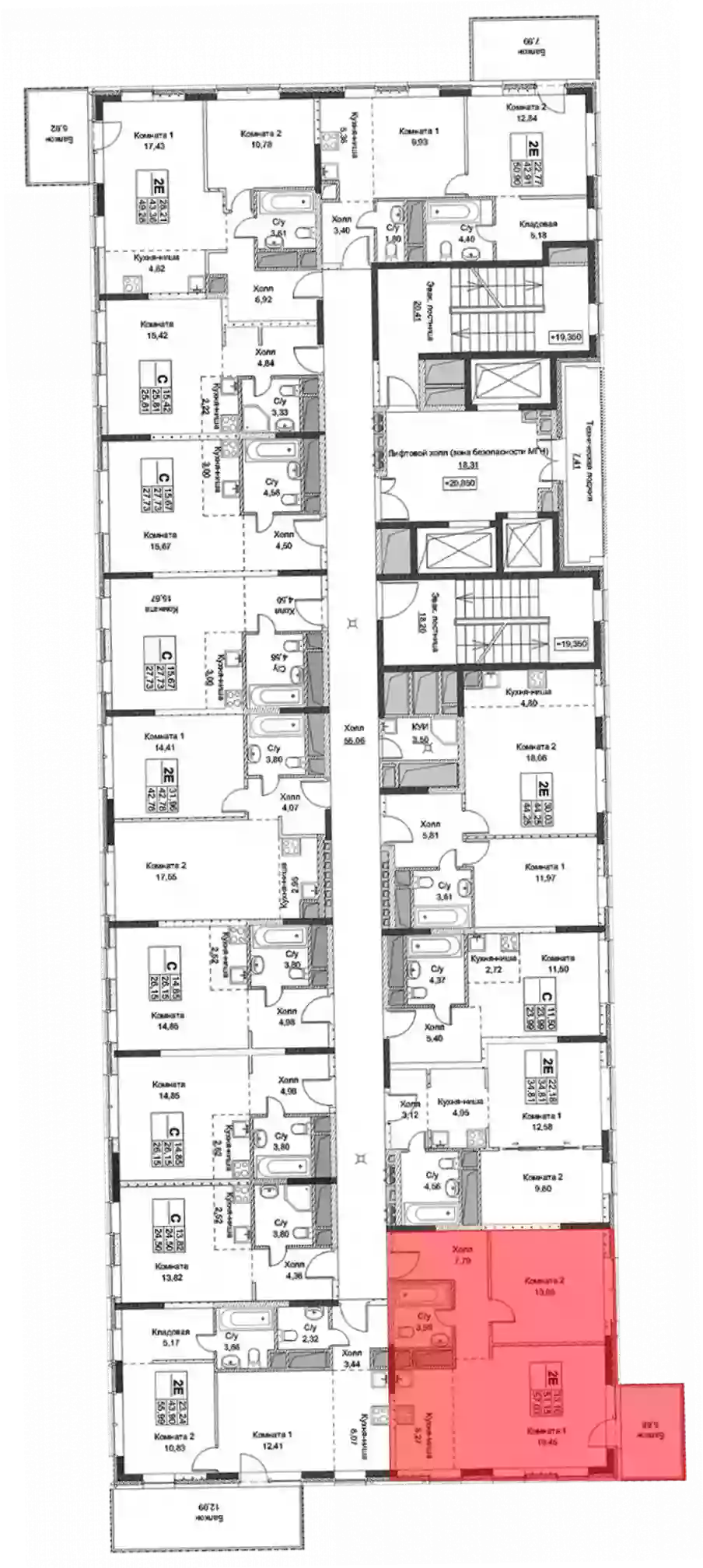 - Этажей в доме 20
