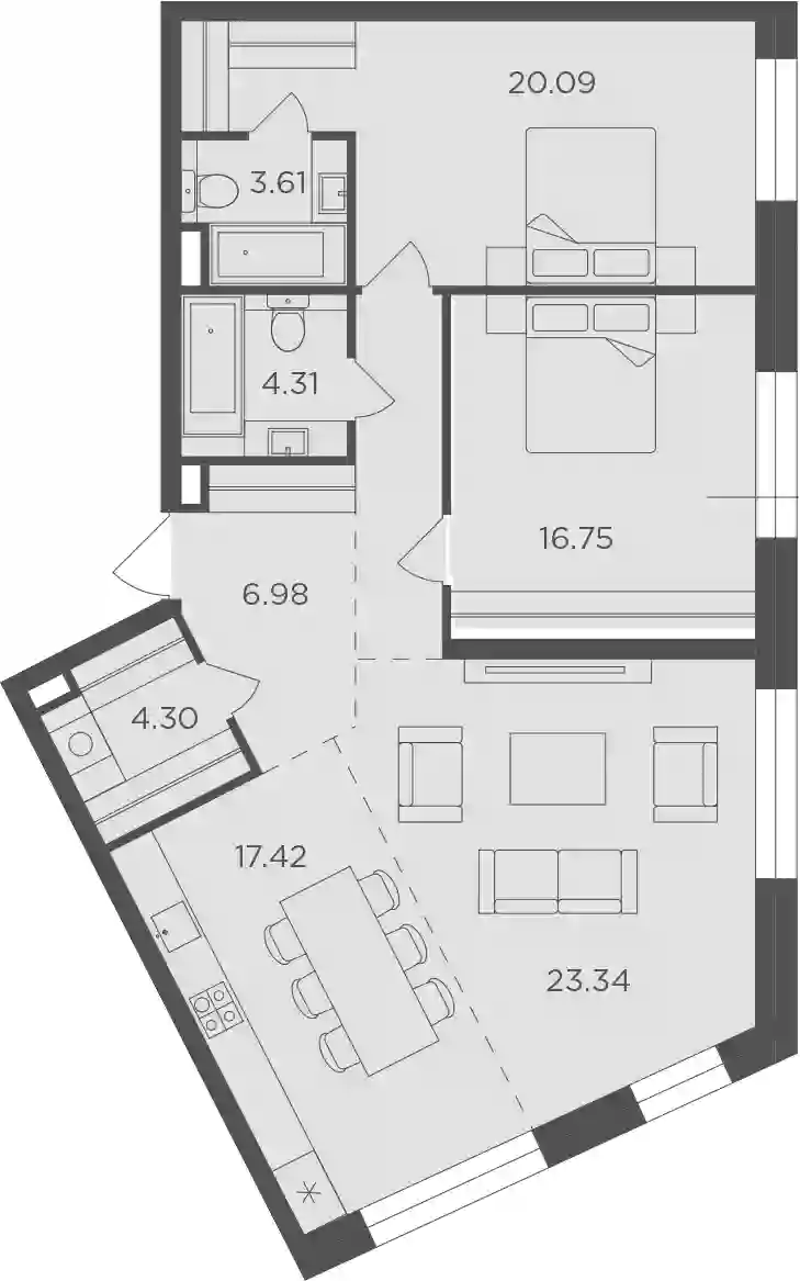 - Тип отделки Без стен