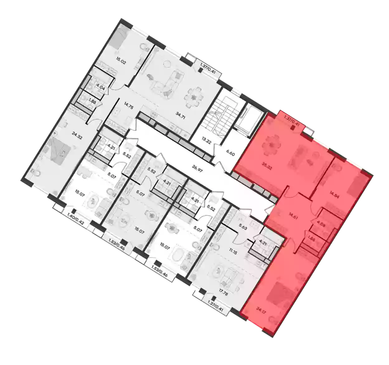 - Площадь кухни 35.32 м²