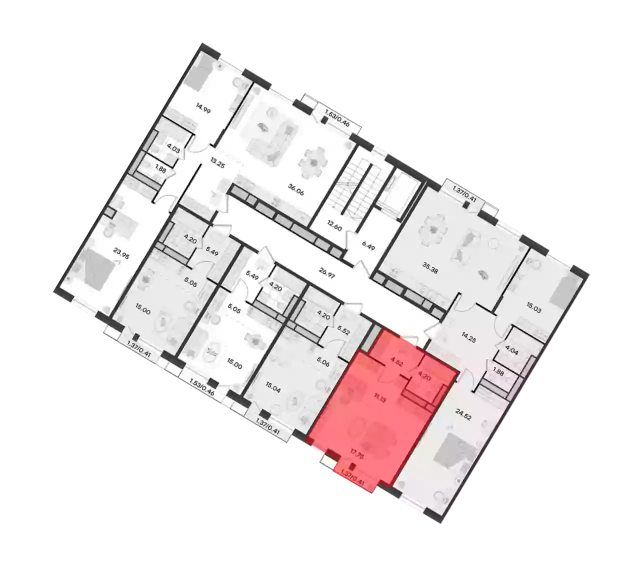 - Общая площадь 38.2 м²