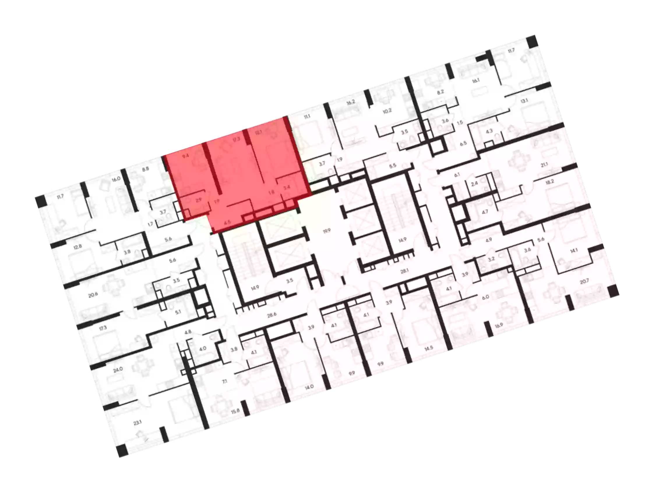- Жилая площадь 30.1 м²