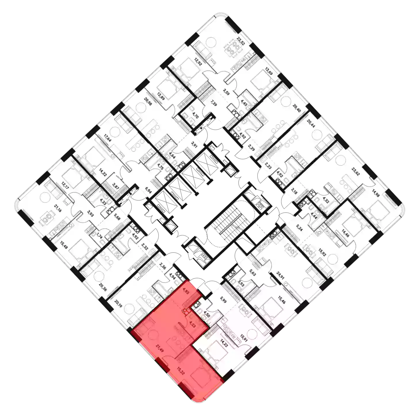 - Площадь кухни 21.49 м²