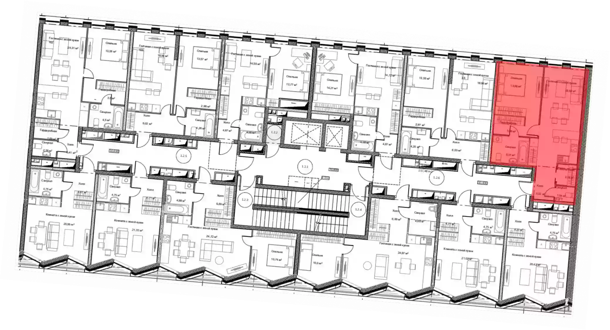 - Площадь кухни 24.6 м²