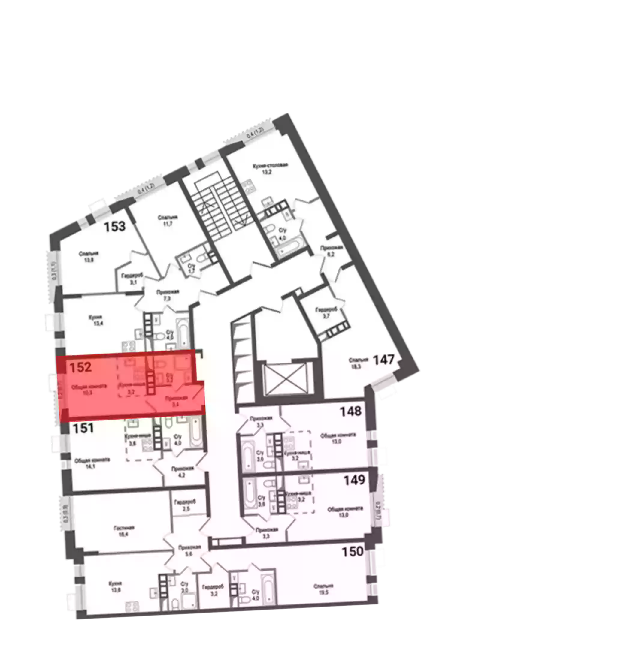 - Жилая площадь 13.5 м²
