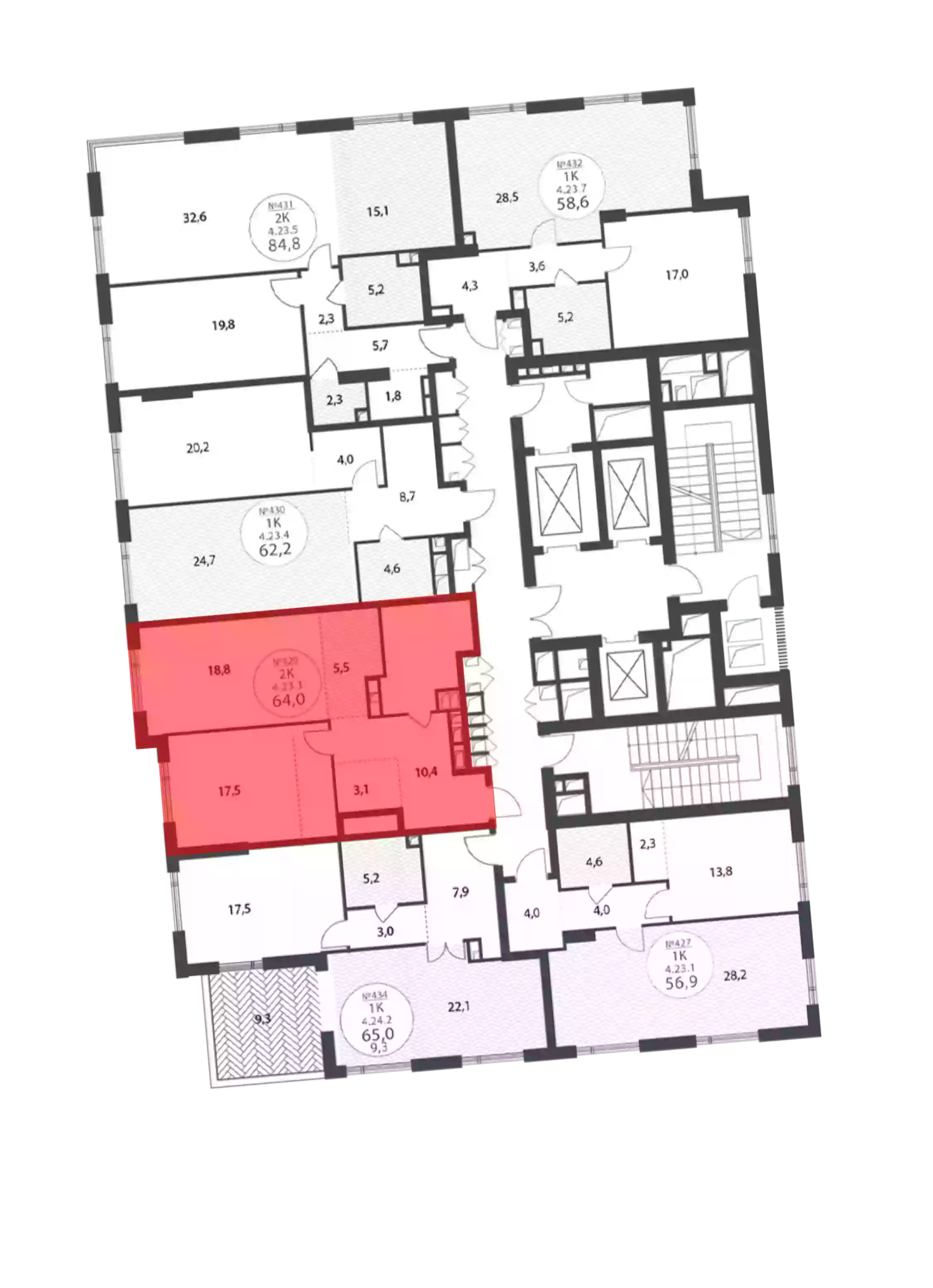- Общая площадь 64.1 м²