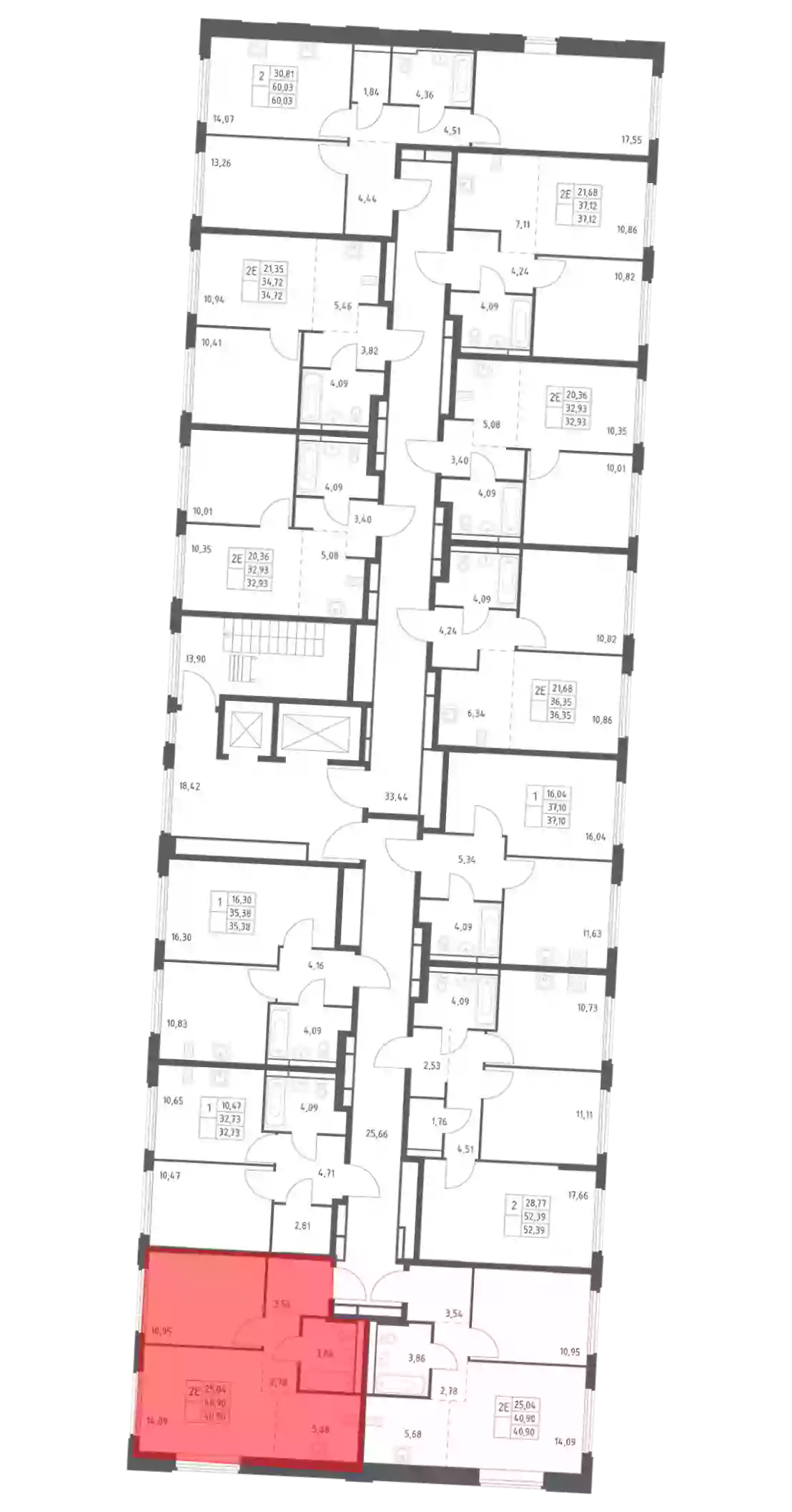 - Общая площадь 40.9 м²