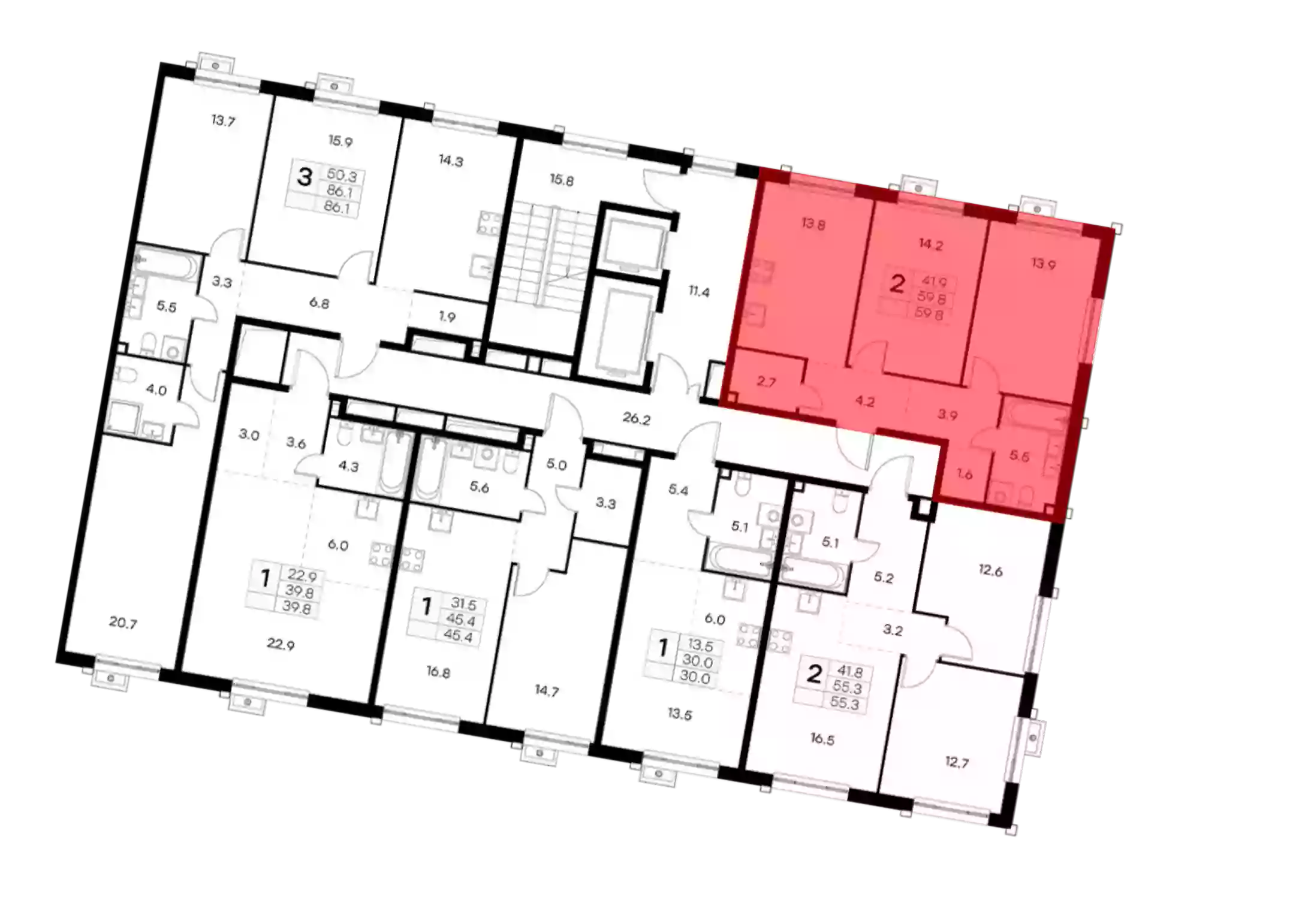 - Общая площадь 59.8 м²
