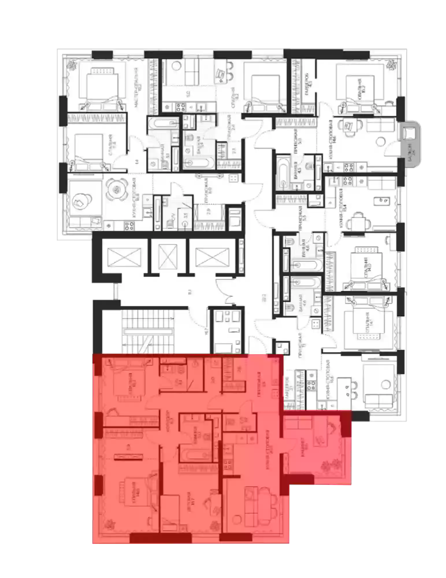 В проекте представлены квартиры с 1–5 комнатами, в том числе европланировки и двухуровневые пространства. Высота потолков составляет 3,2–4,8 м, установлены увеличенные окна и французские балконы, также предусмотрены эркеры. Из ряда квартир открываются виды на парк и город. Объект оснащен премиальной инженерией, включая VRF-кондиционирование, энергосберегающее оборудование, современные системы диспетчеризации и учета ресурсов.