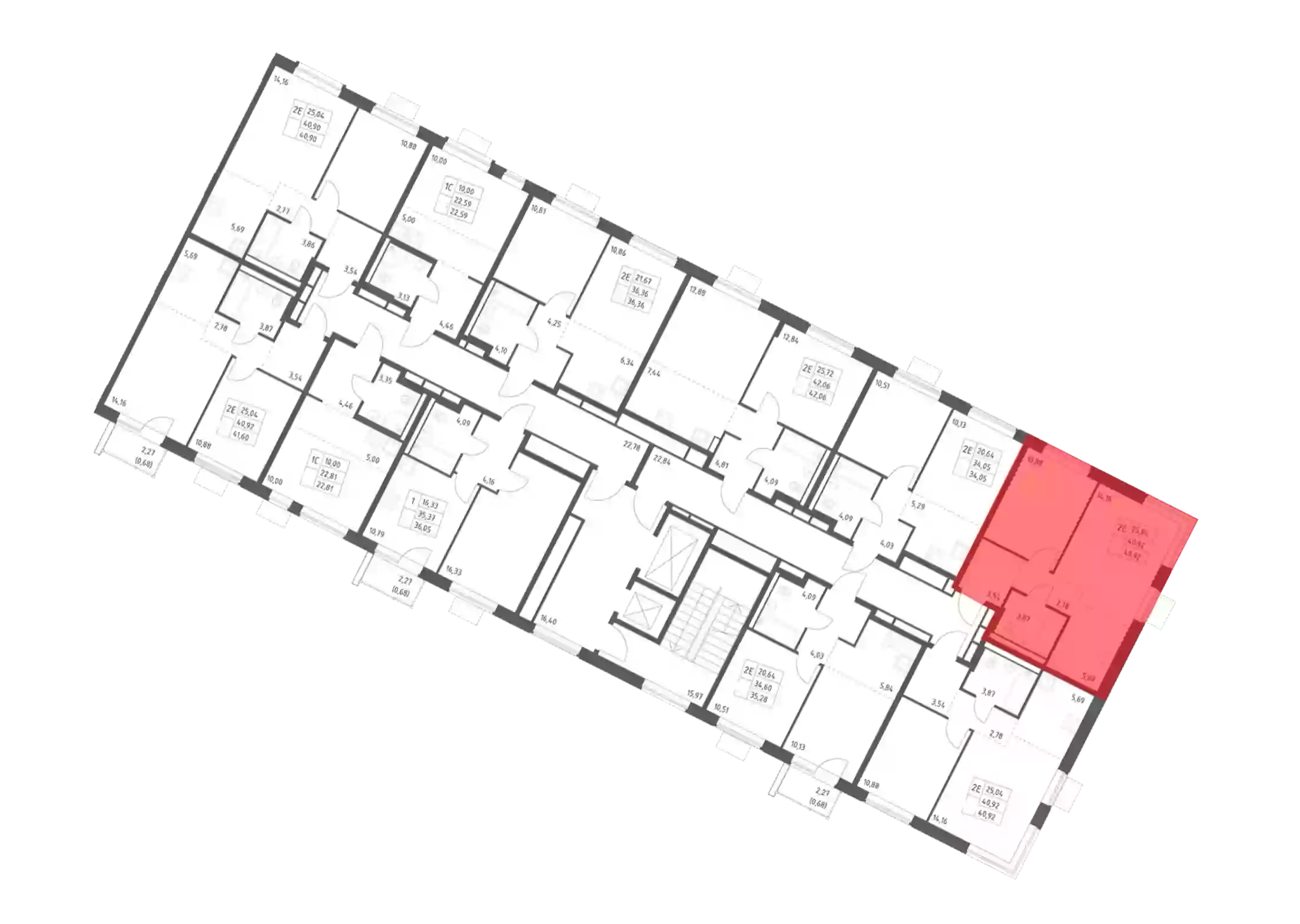 - Общая площадь 40.92 м²