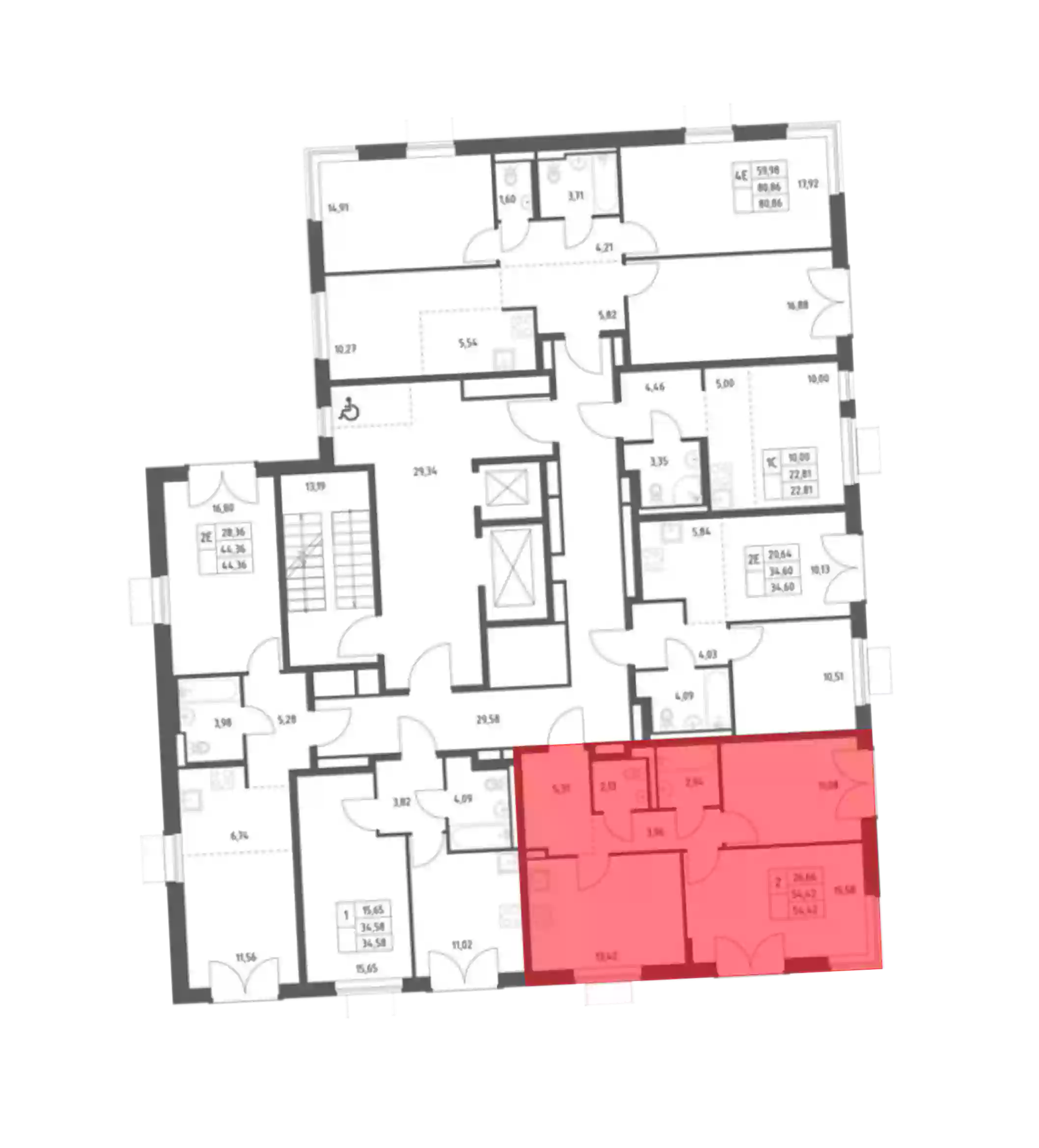 - Общая площадь 54.42 м²