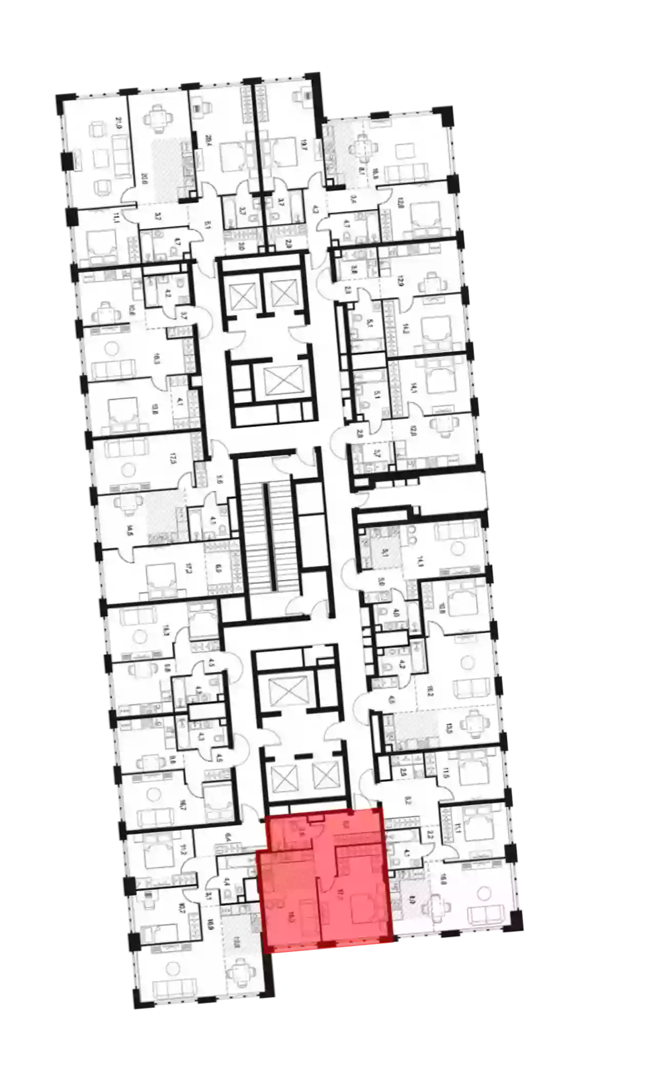 - Жилая площадь 17.1 м²
