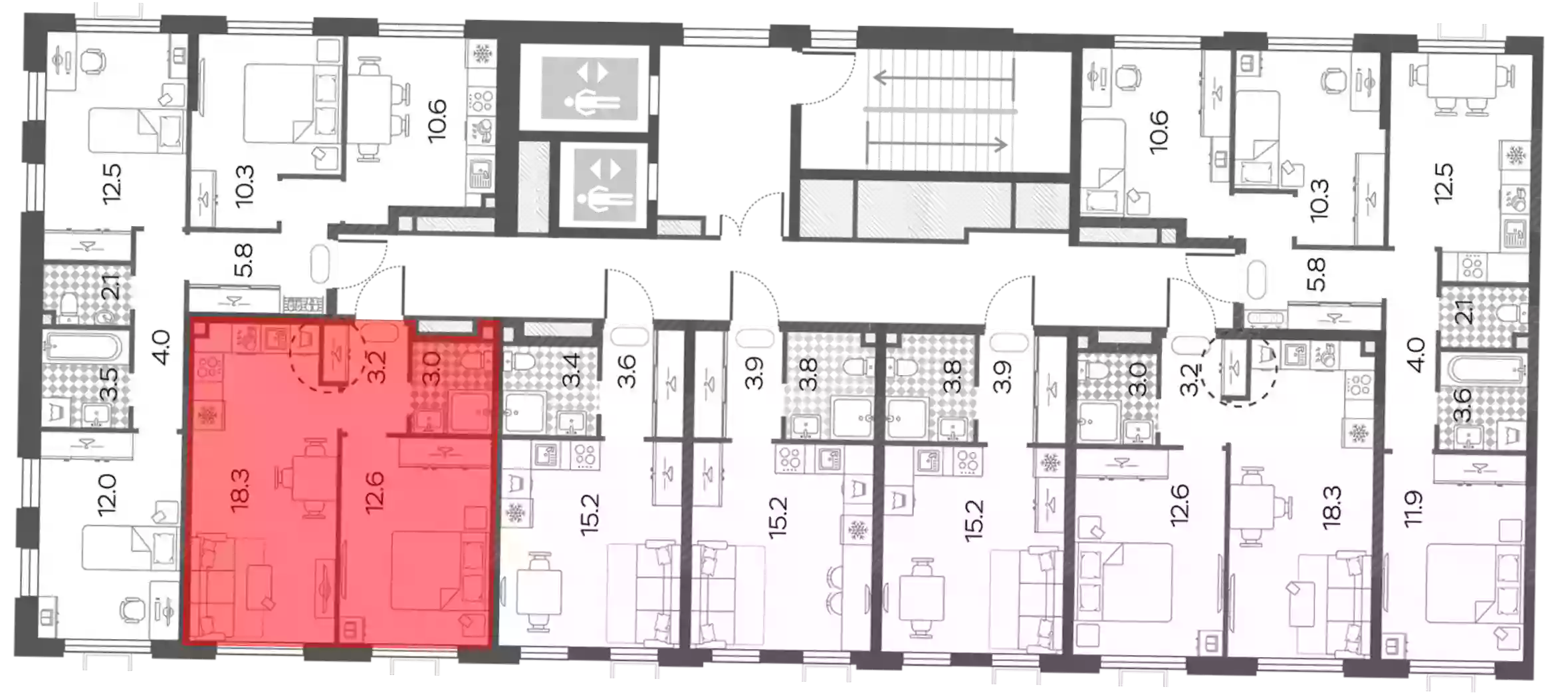 - Жилая площадь 12.6 м²