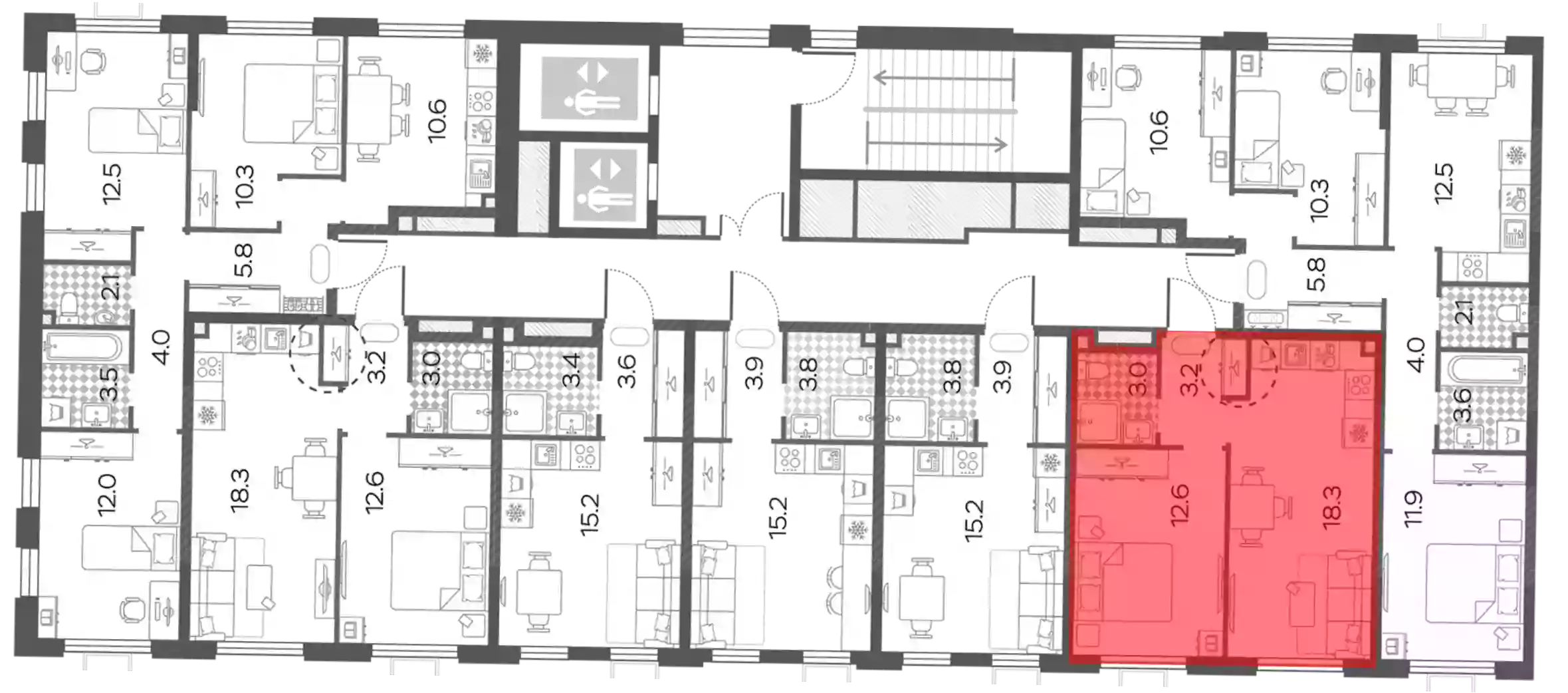 - Жилая площадь 18.3 м²