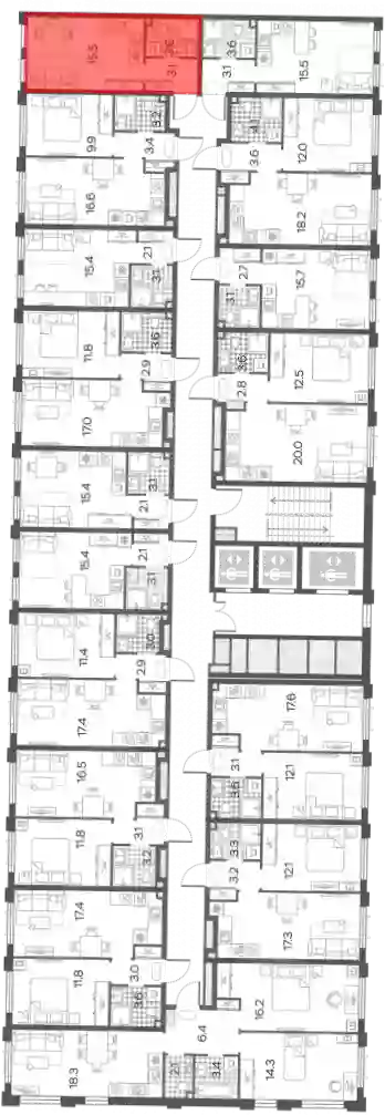 - Жилая площадь 15.5 м²