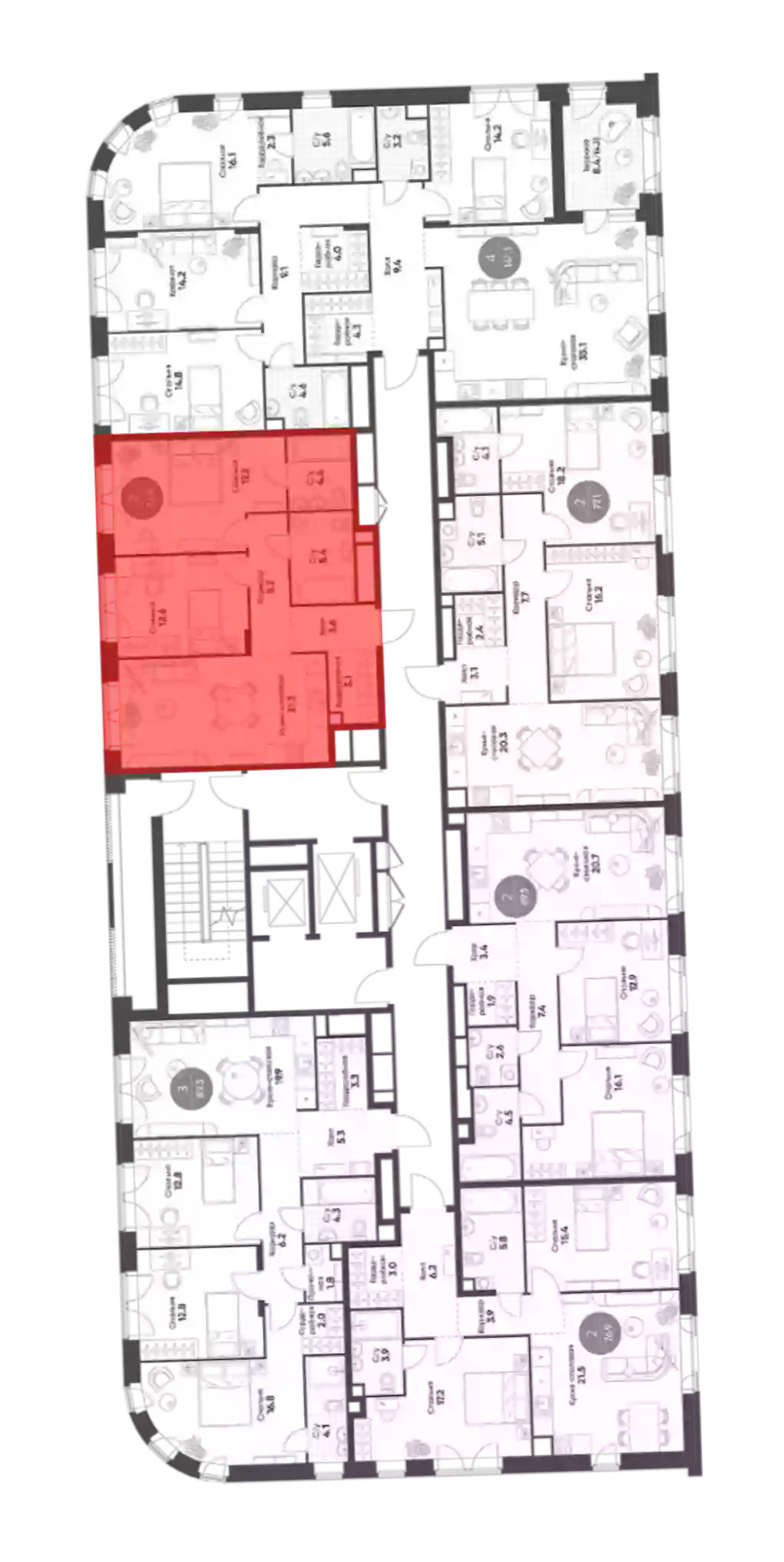 - Этажей в доме 17