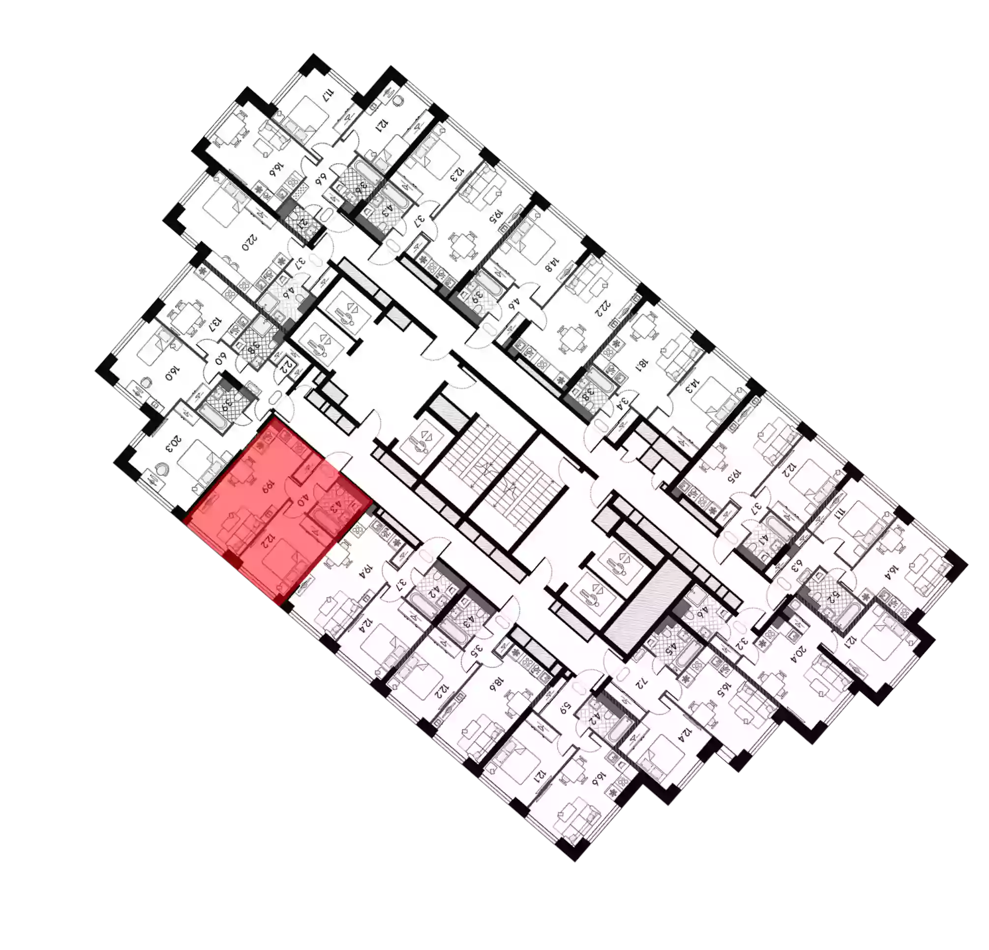 - Этажей в доме 43