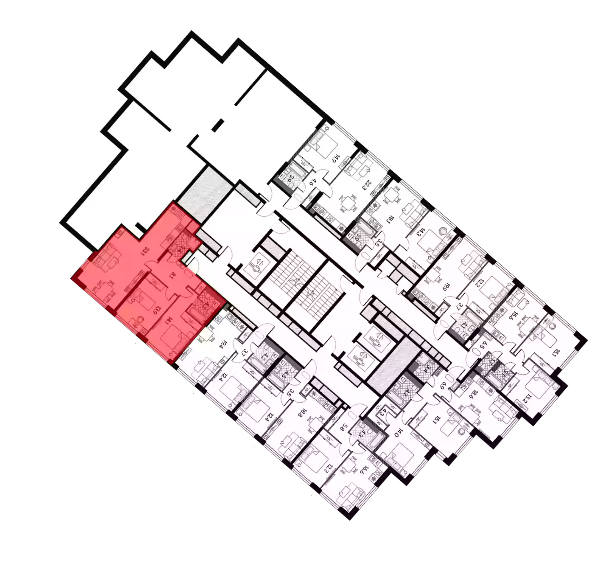 - Этажей в доме 43