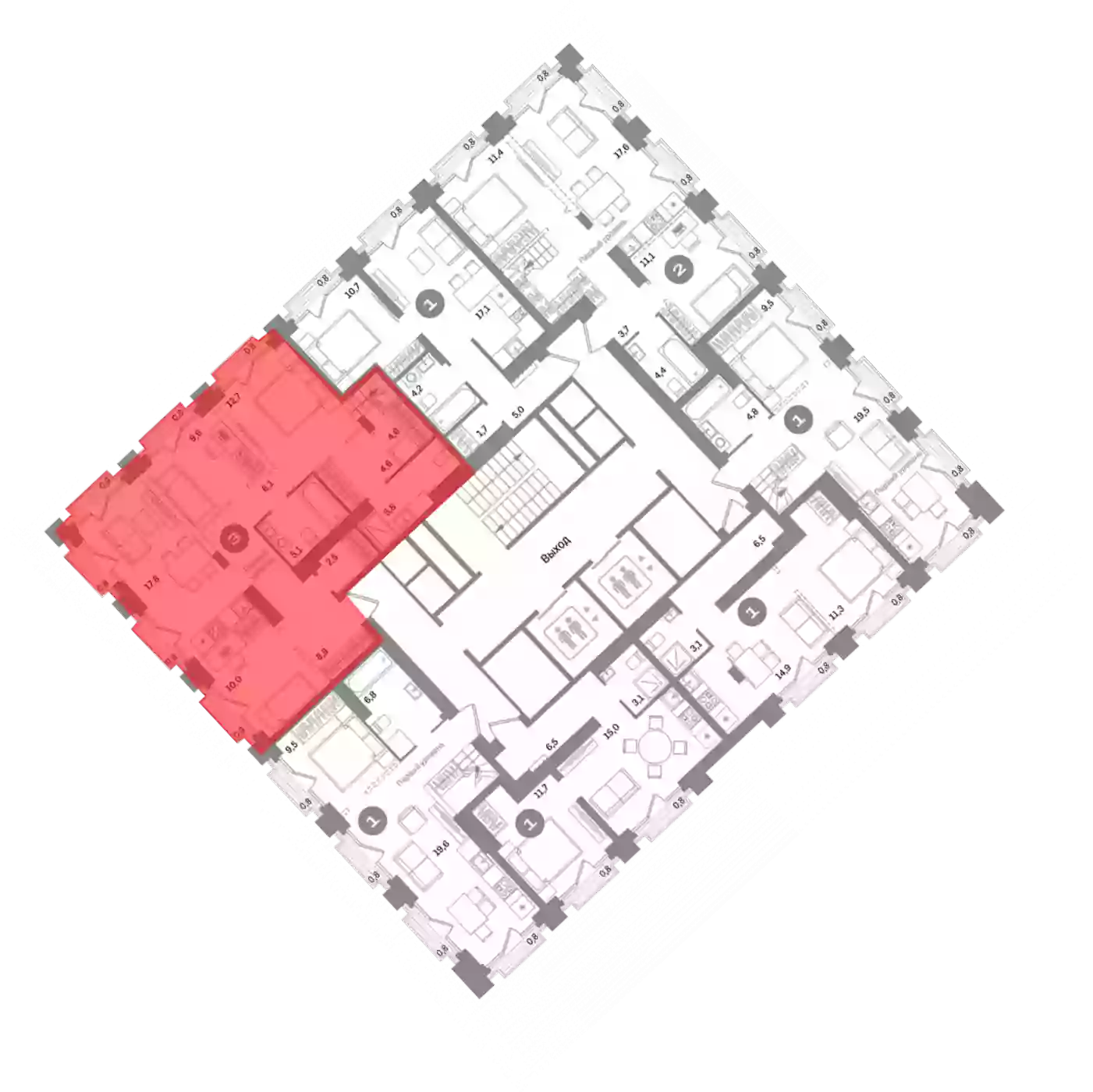 - Этажей в доме 17