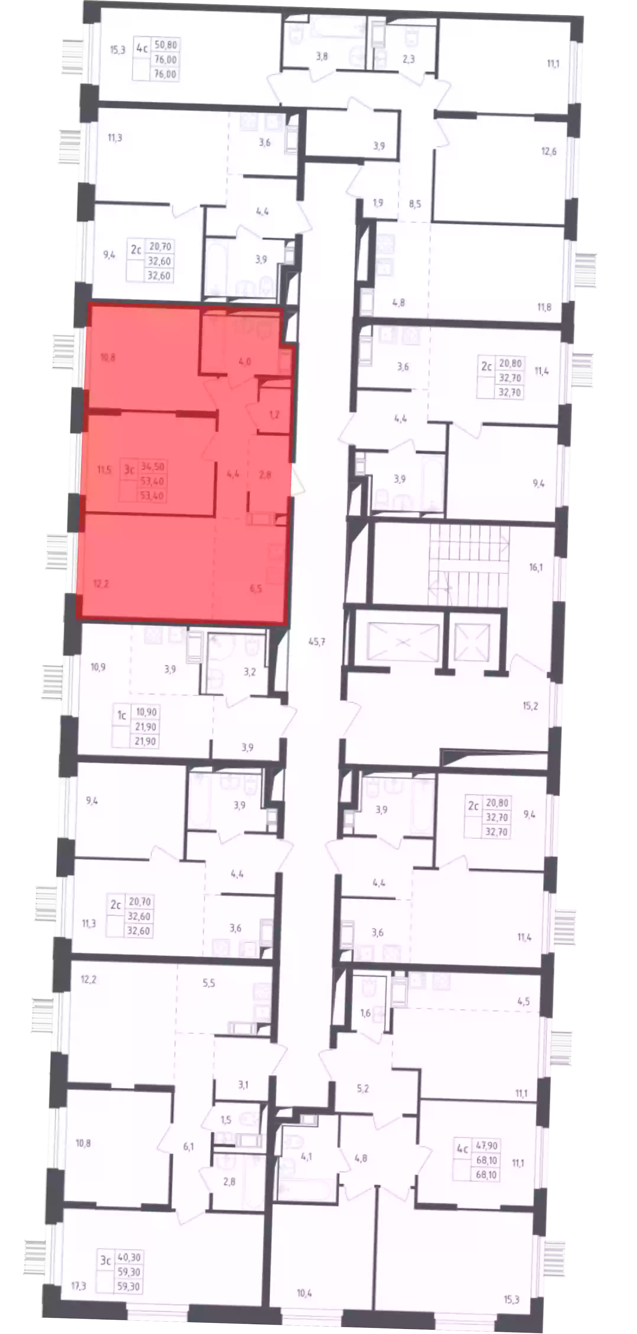 3-к.квартира, 53.4 м², 3 эт.