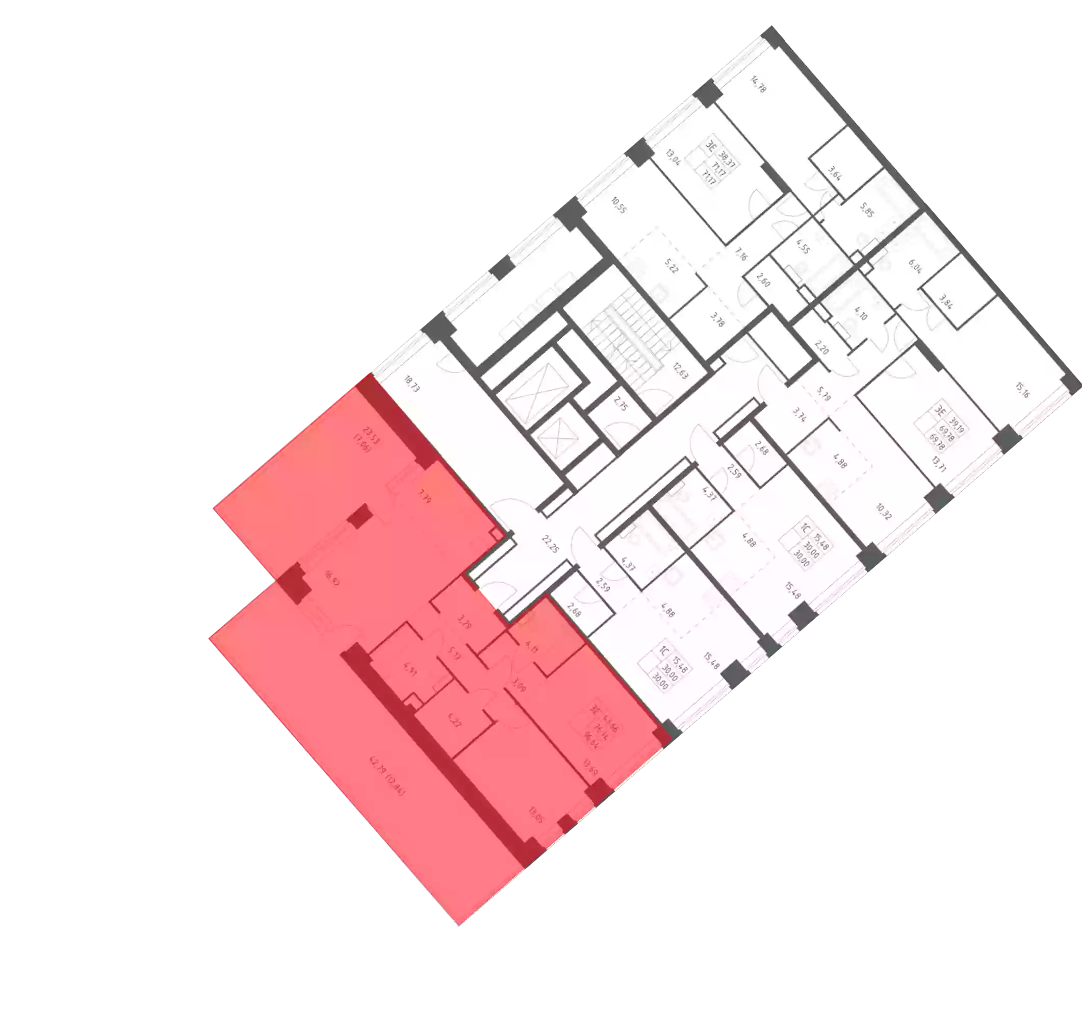 - Общая площадь 76.74 м²