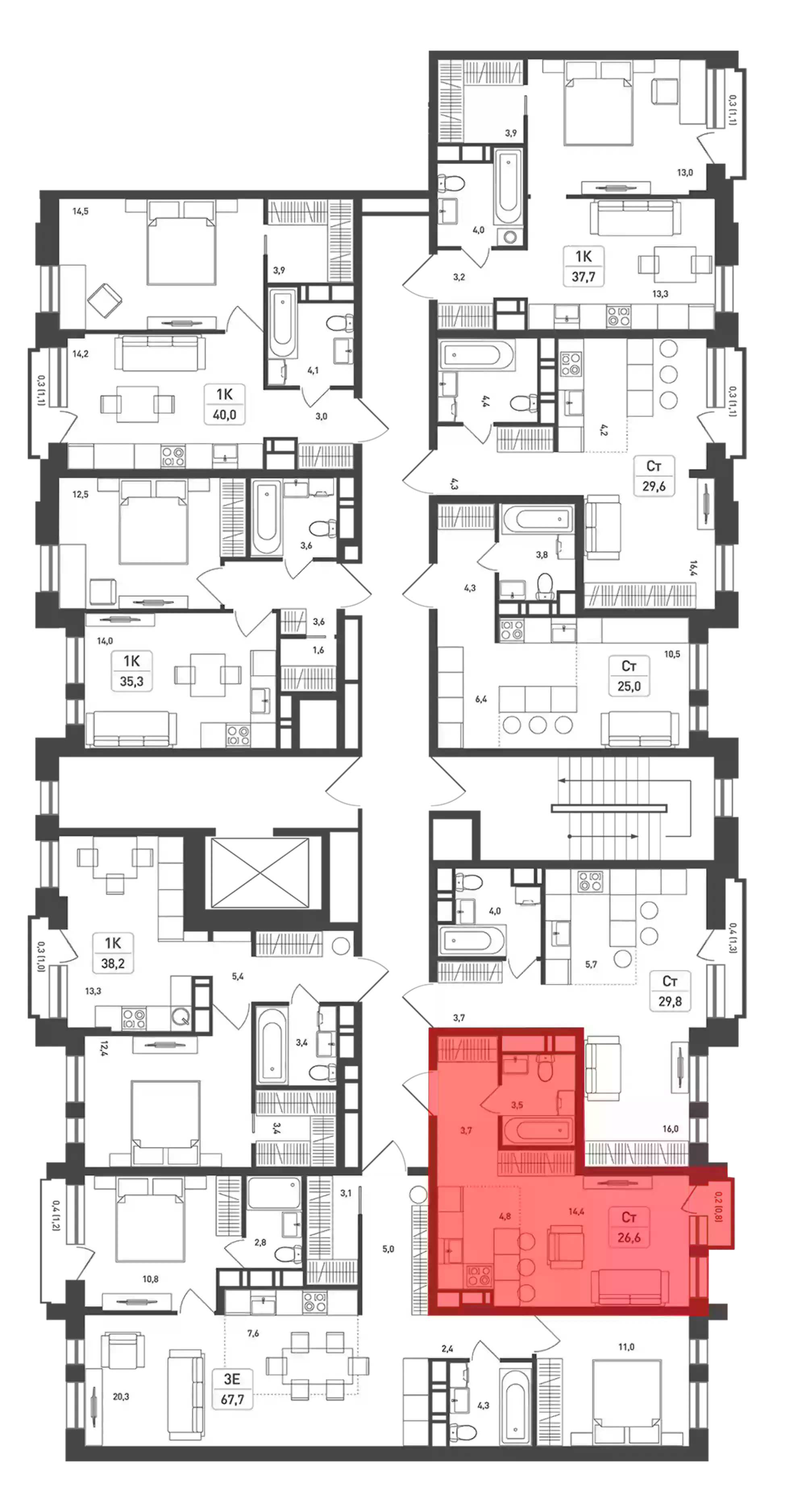 - Общая площадь 26.4 м²