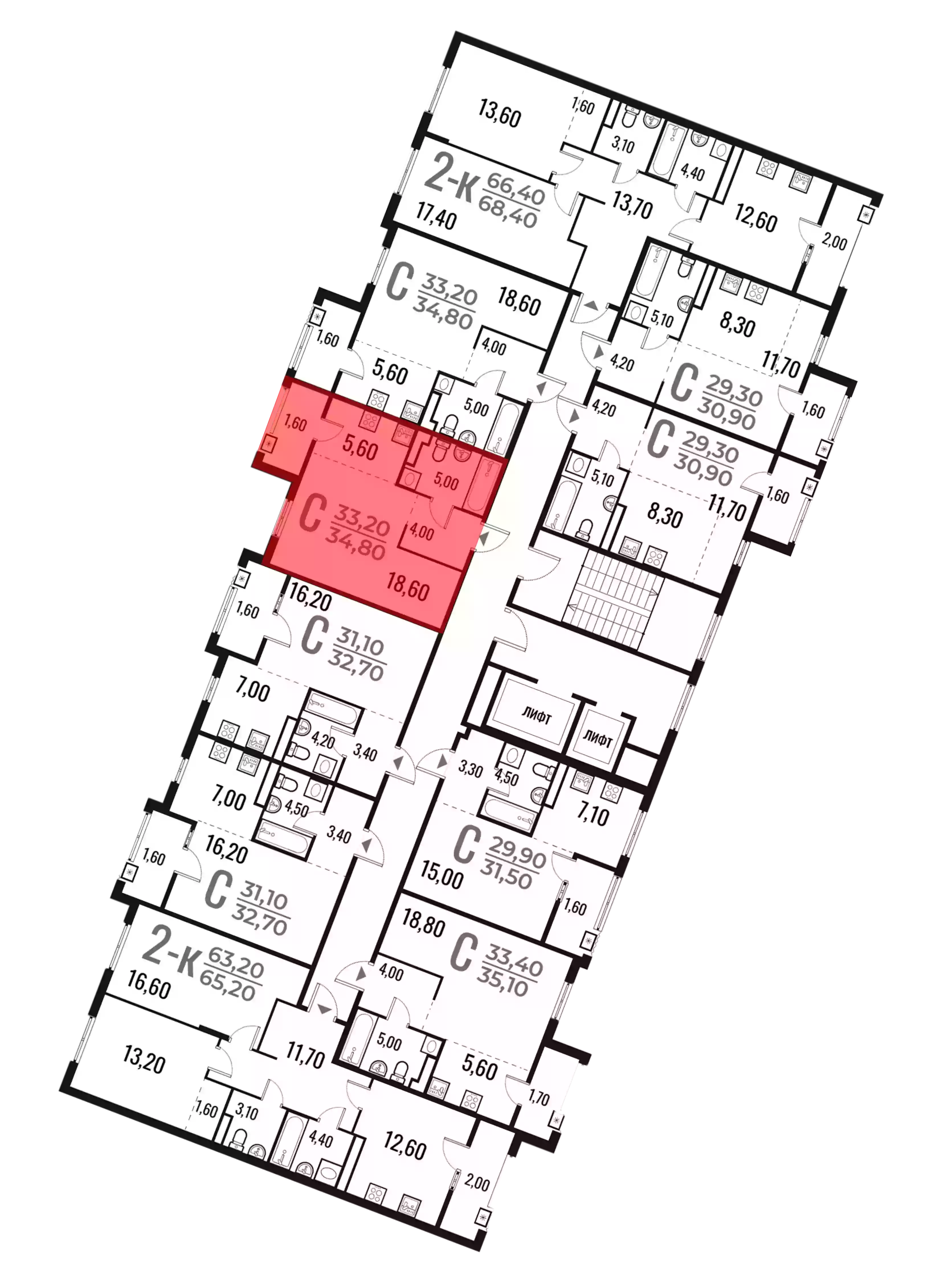 - Общая площадь 33.2 м²