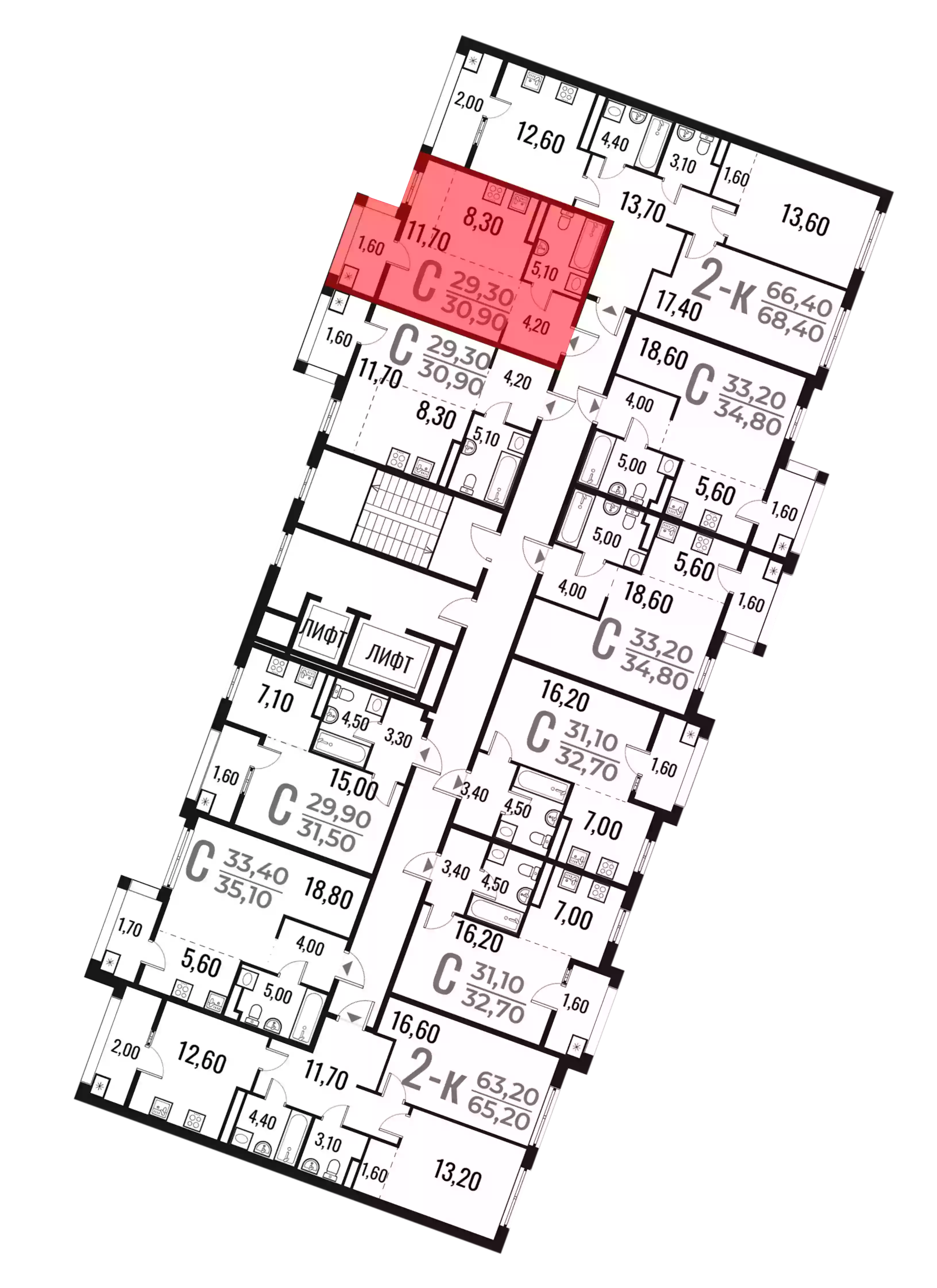 - Общая площадь 29.3 м²