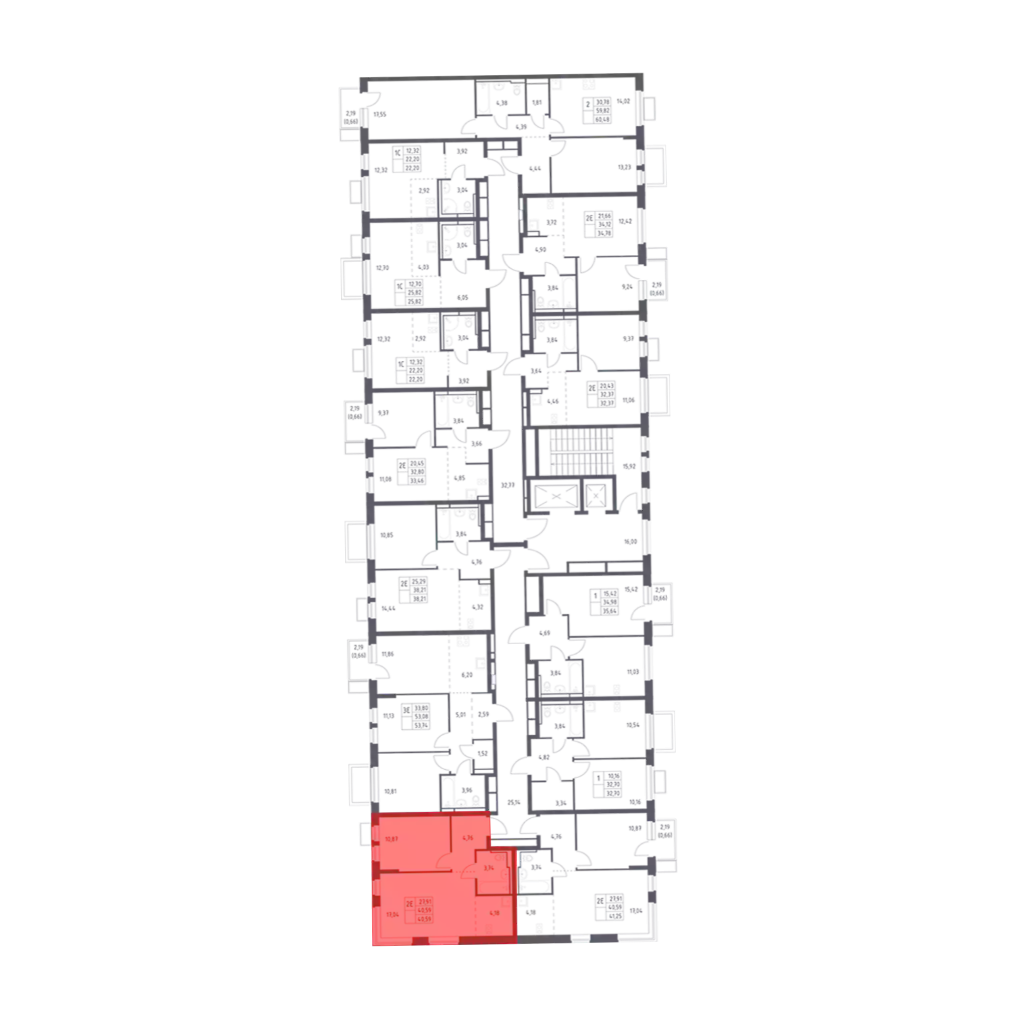 - Общая площадь 40.59 м²