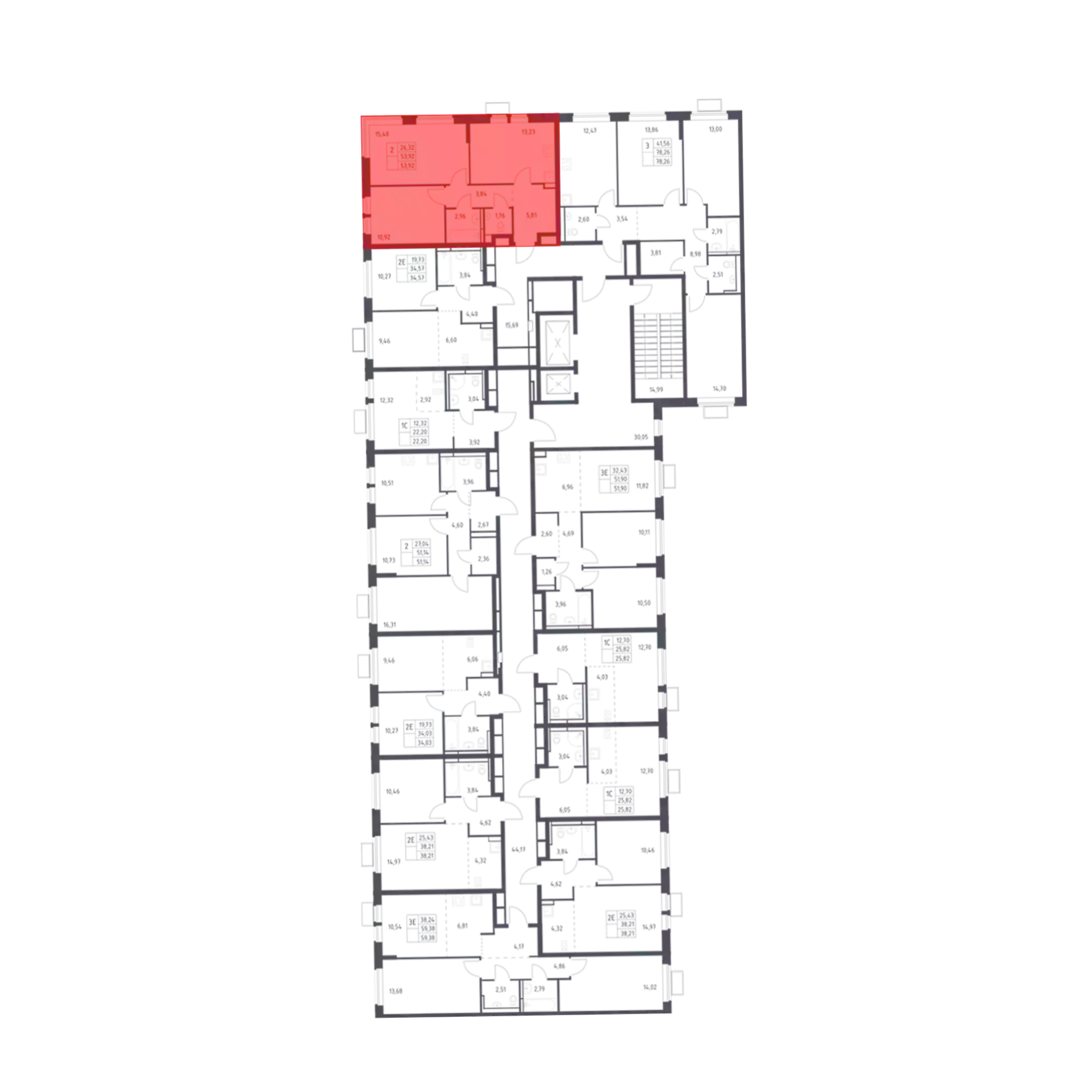 - Общая площадь 53.92 м²