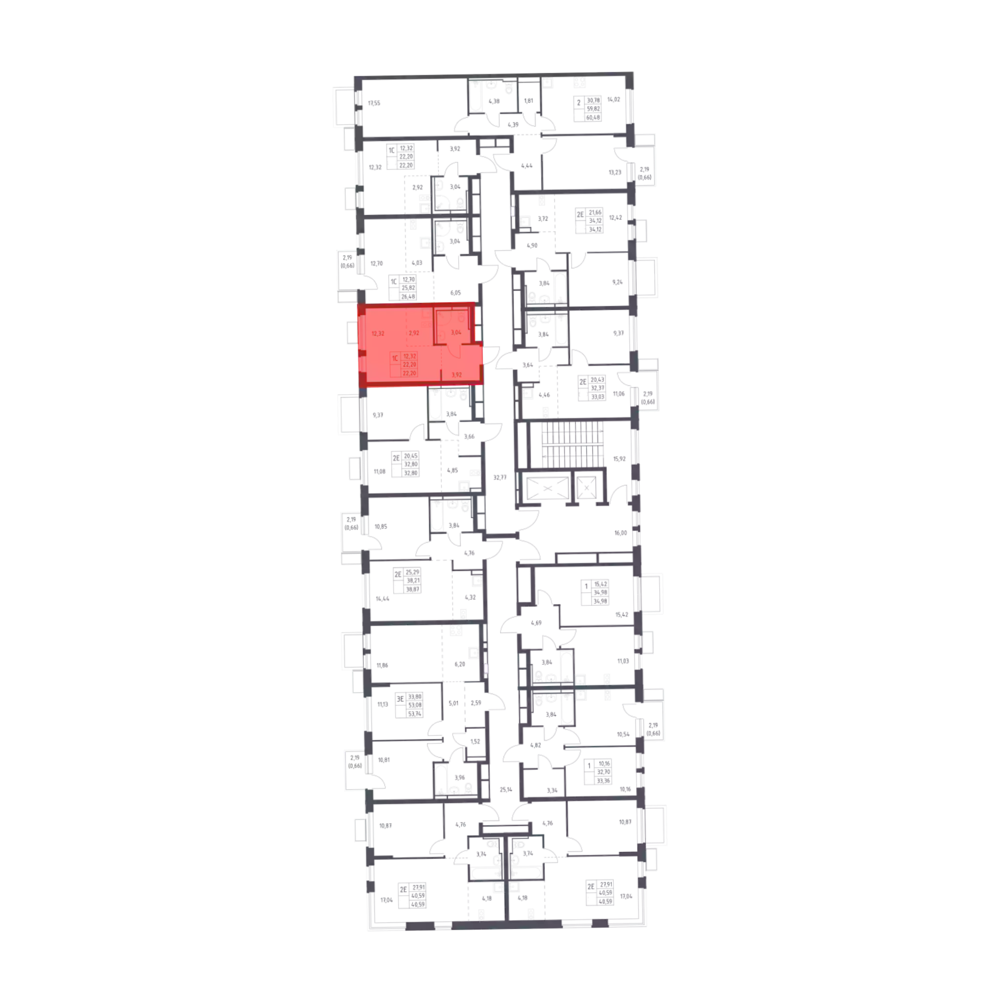 - Общая площадь 22.2 м²