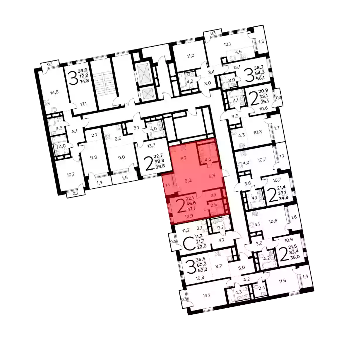 2-к.квартира, 46.6 м², 12 эт.