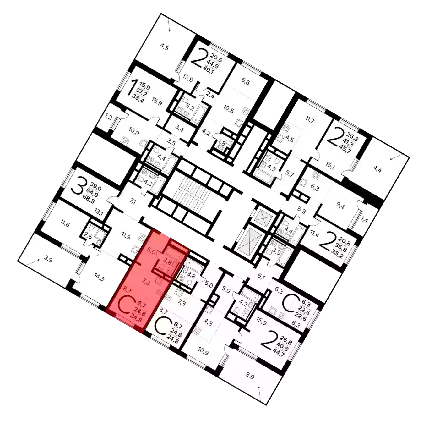 - Общая площадь 24.8 м²
