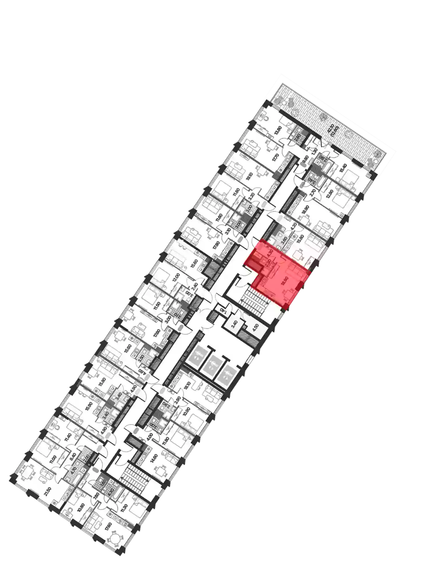 - Этажей в доме 45