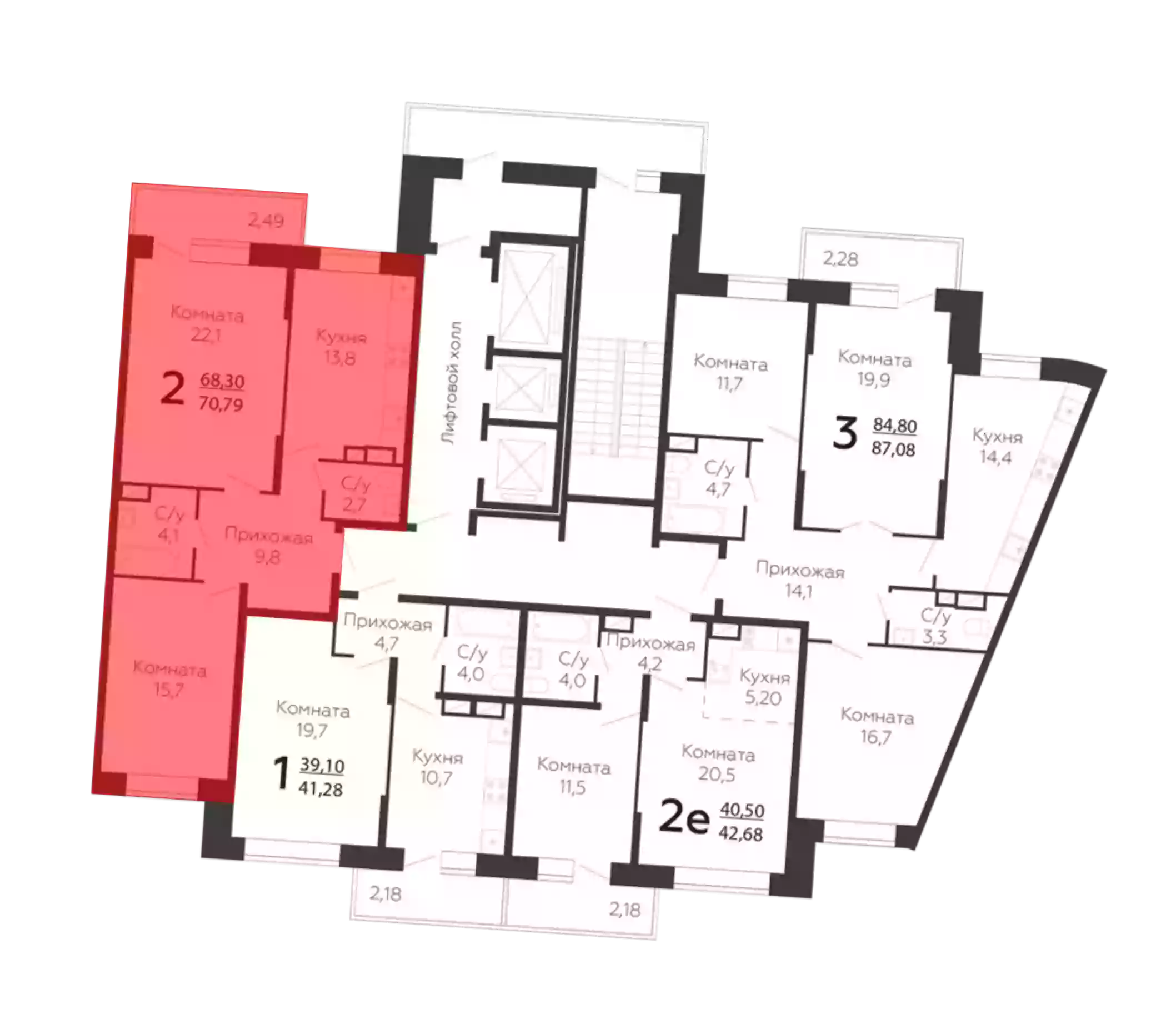 2-к.квартира, 68.3 м², 21 эт.