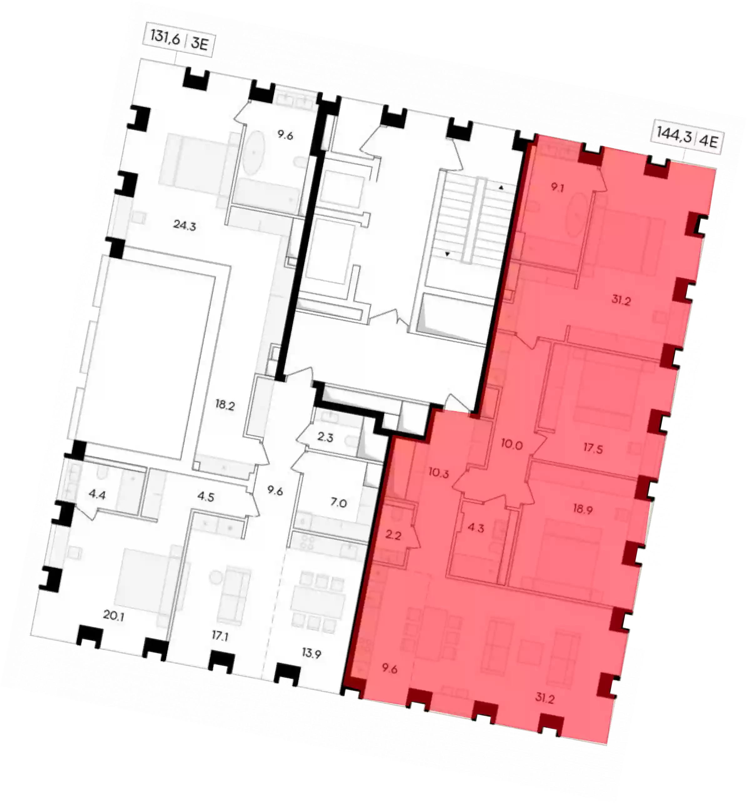 4-к.квартира, 144.3 м², 17 эт.