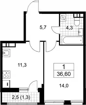 • Общая площадь 35.3 м²