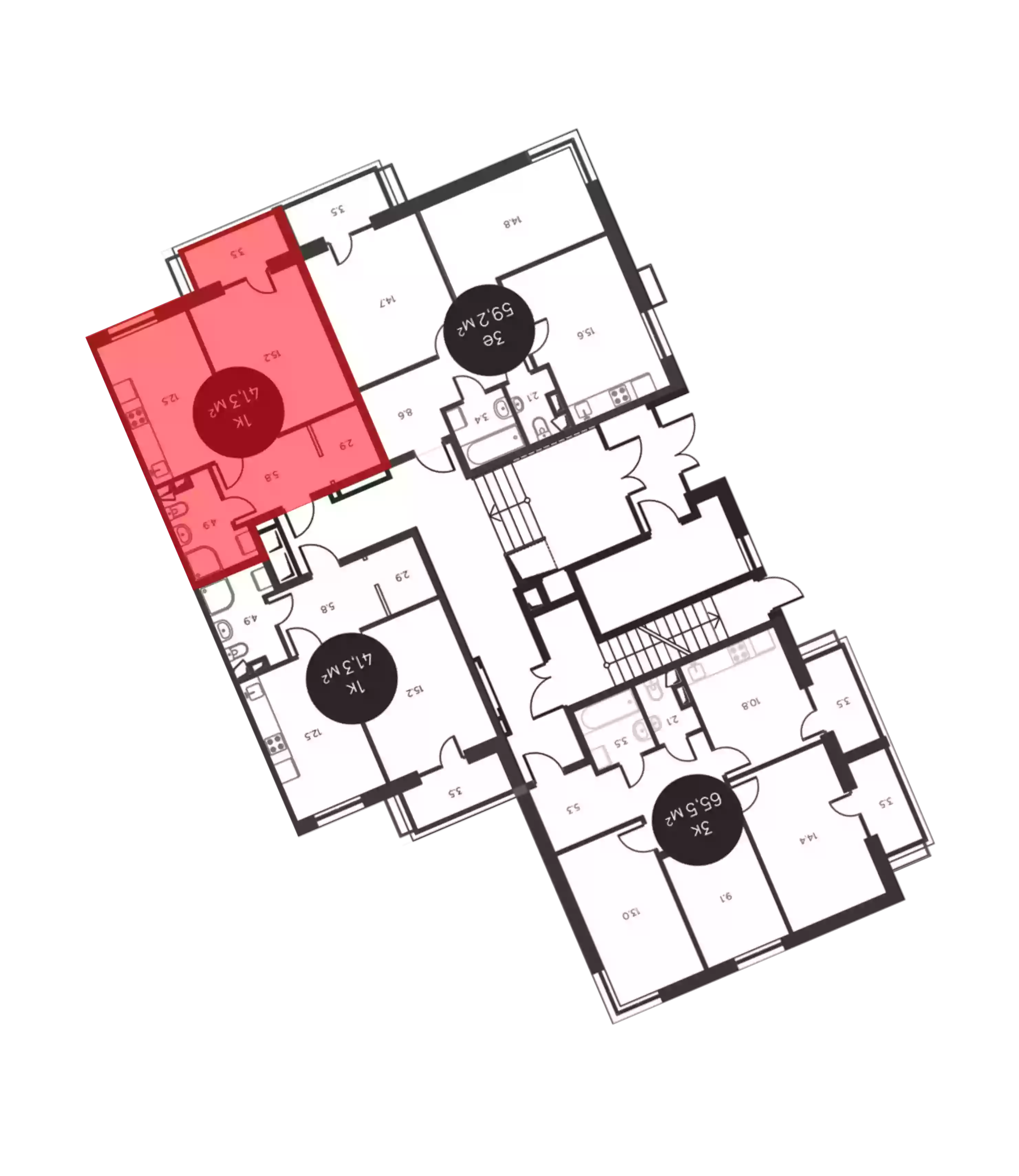 - Общая площадь 41.3 м²