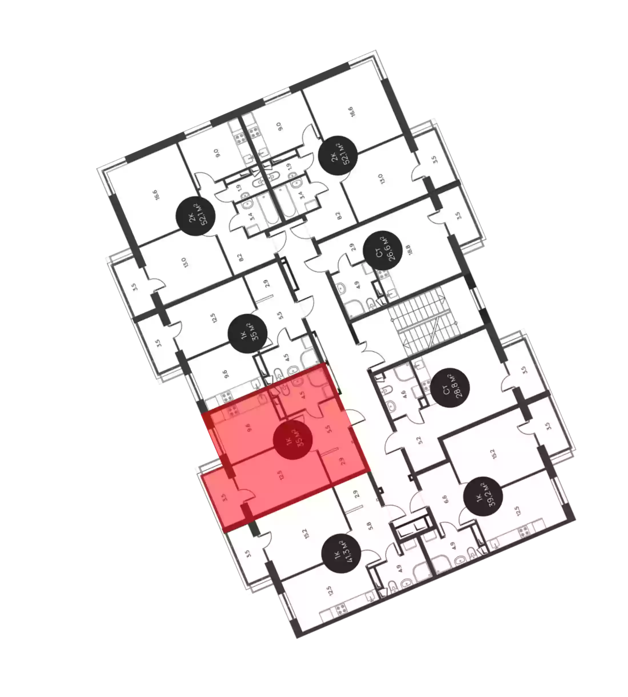 - Общая площадь 35 м²