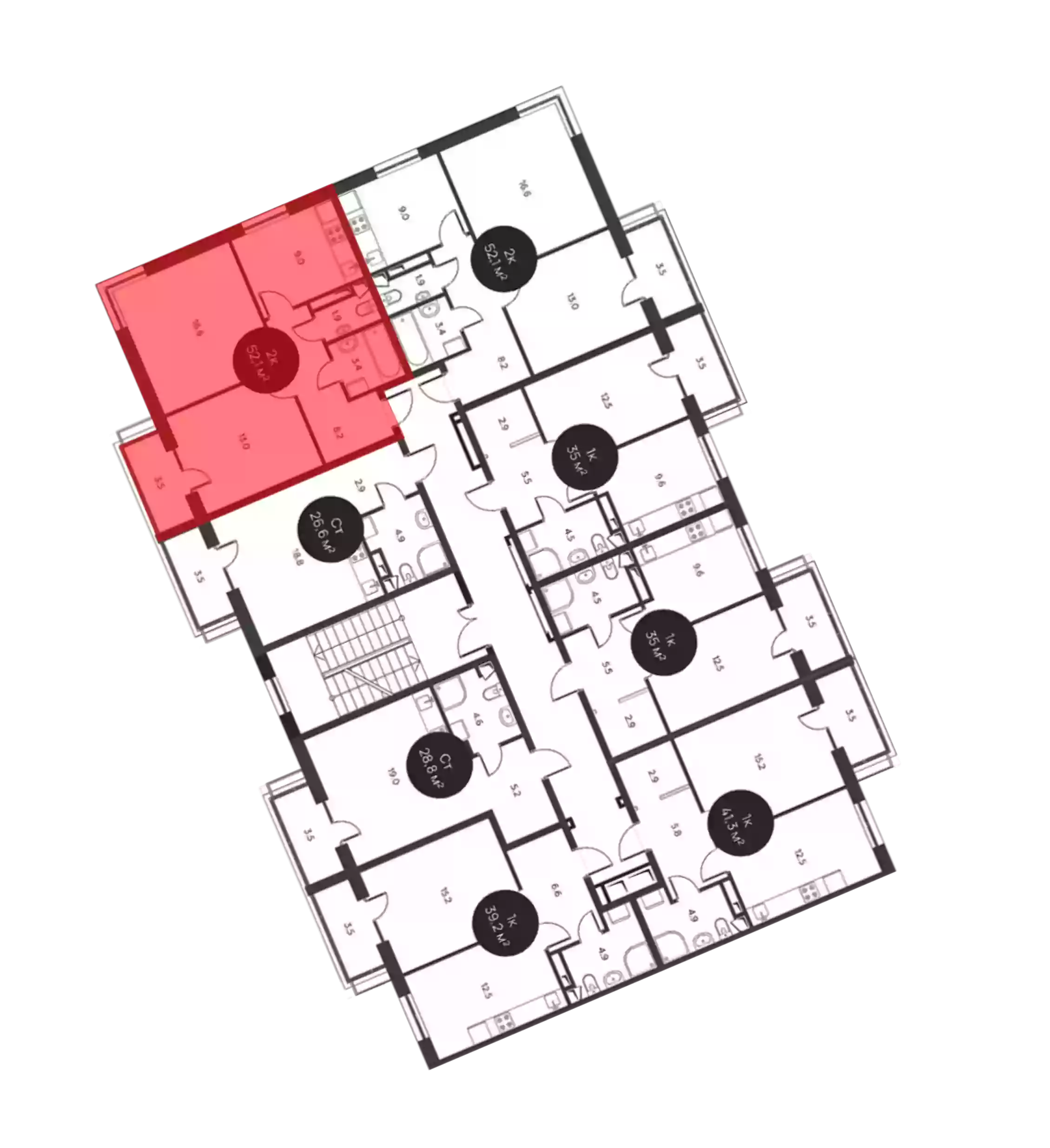- Общая площадь 52.1 м²