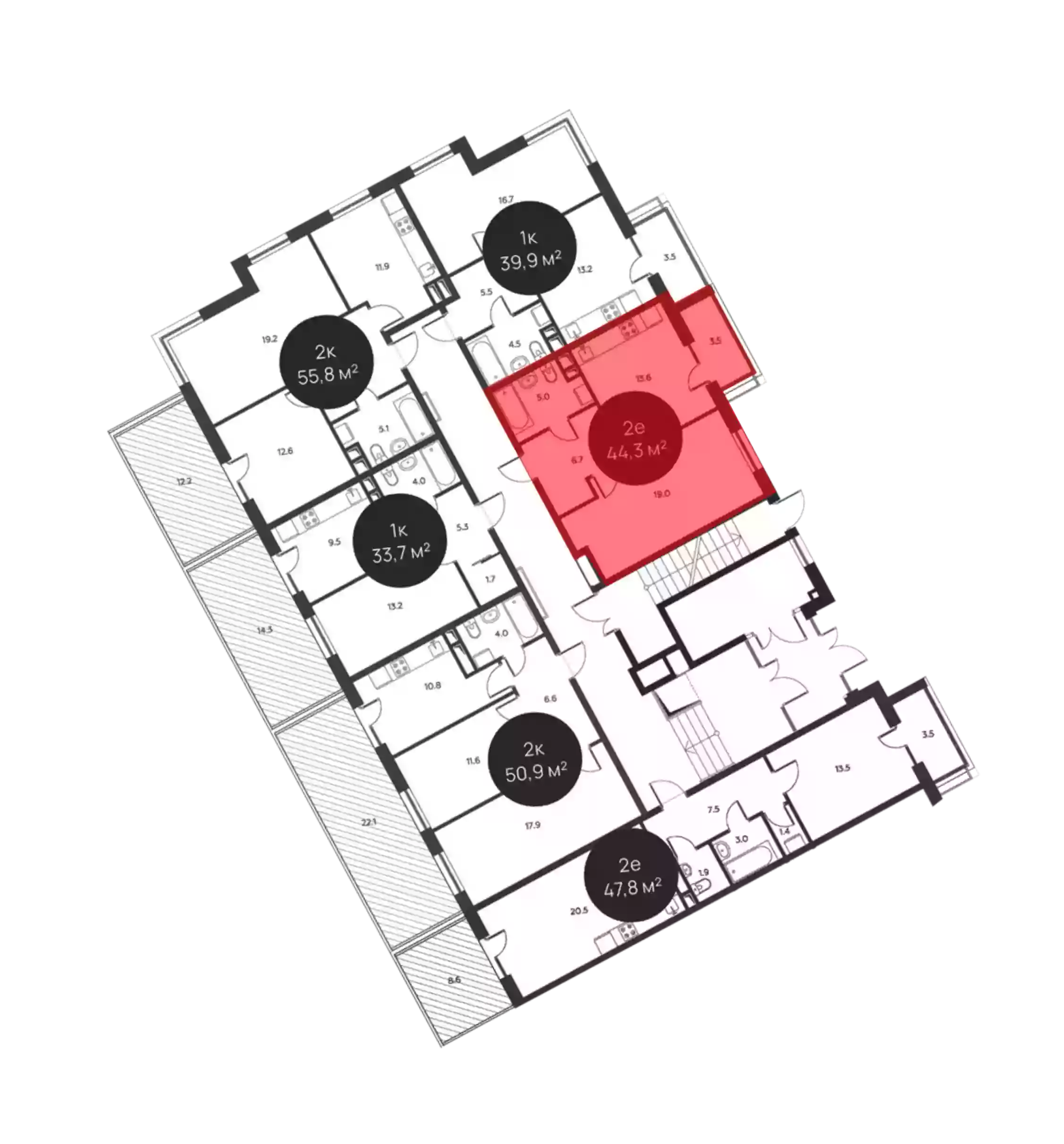 - Общая площадь 44.3 м²
