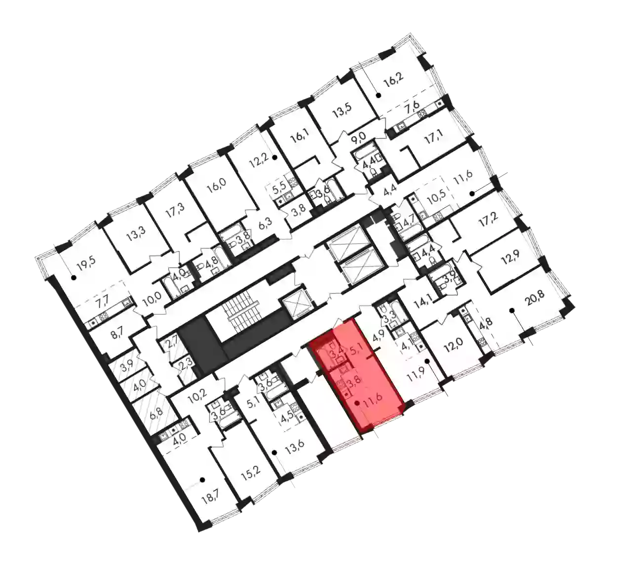 - Общая площадь 23.9 м²