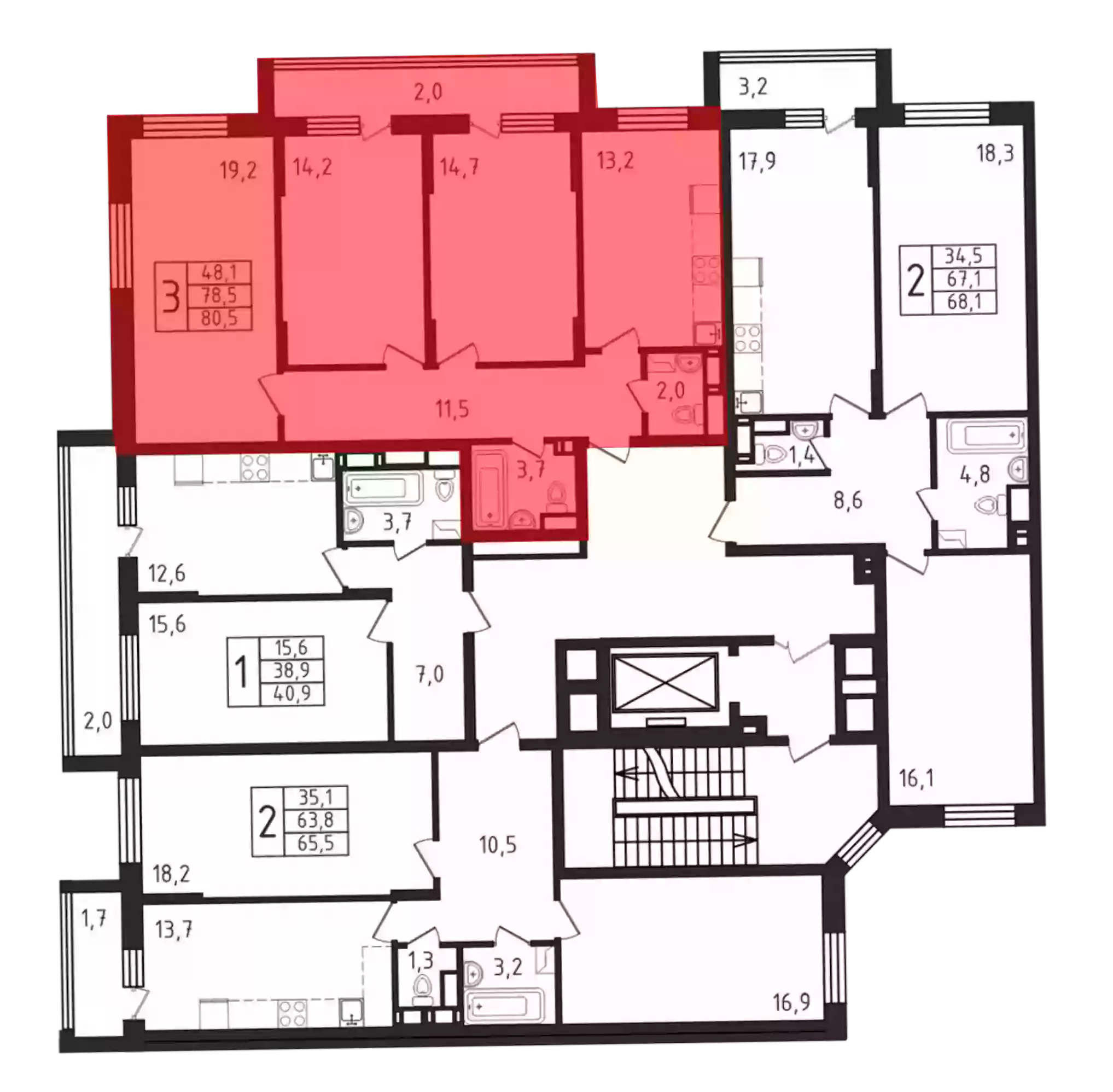 3-к.квартира, 78.7 м², 3 эт.