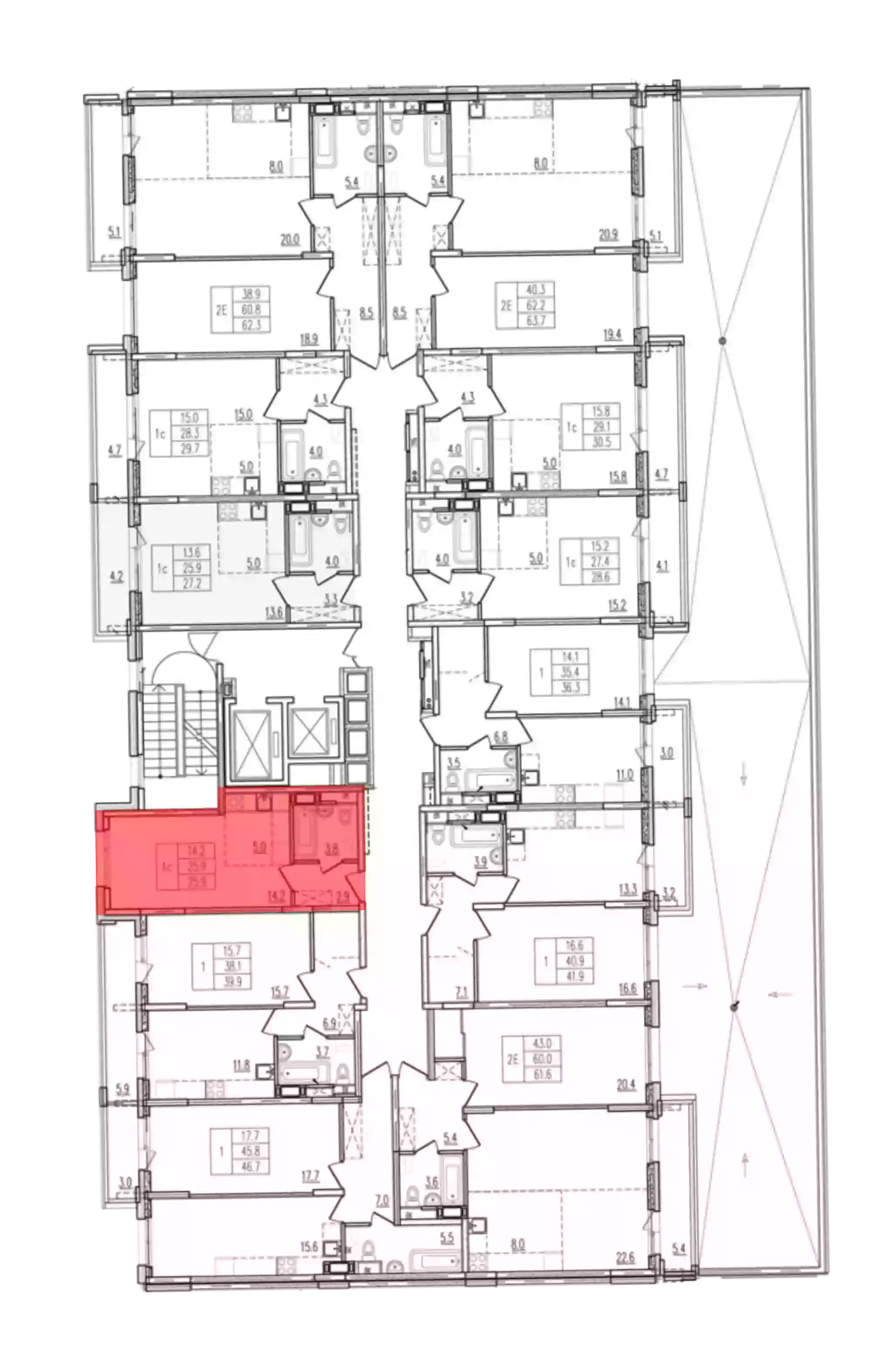 - Общая площадь 25.9 м²