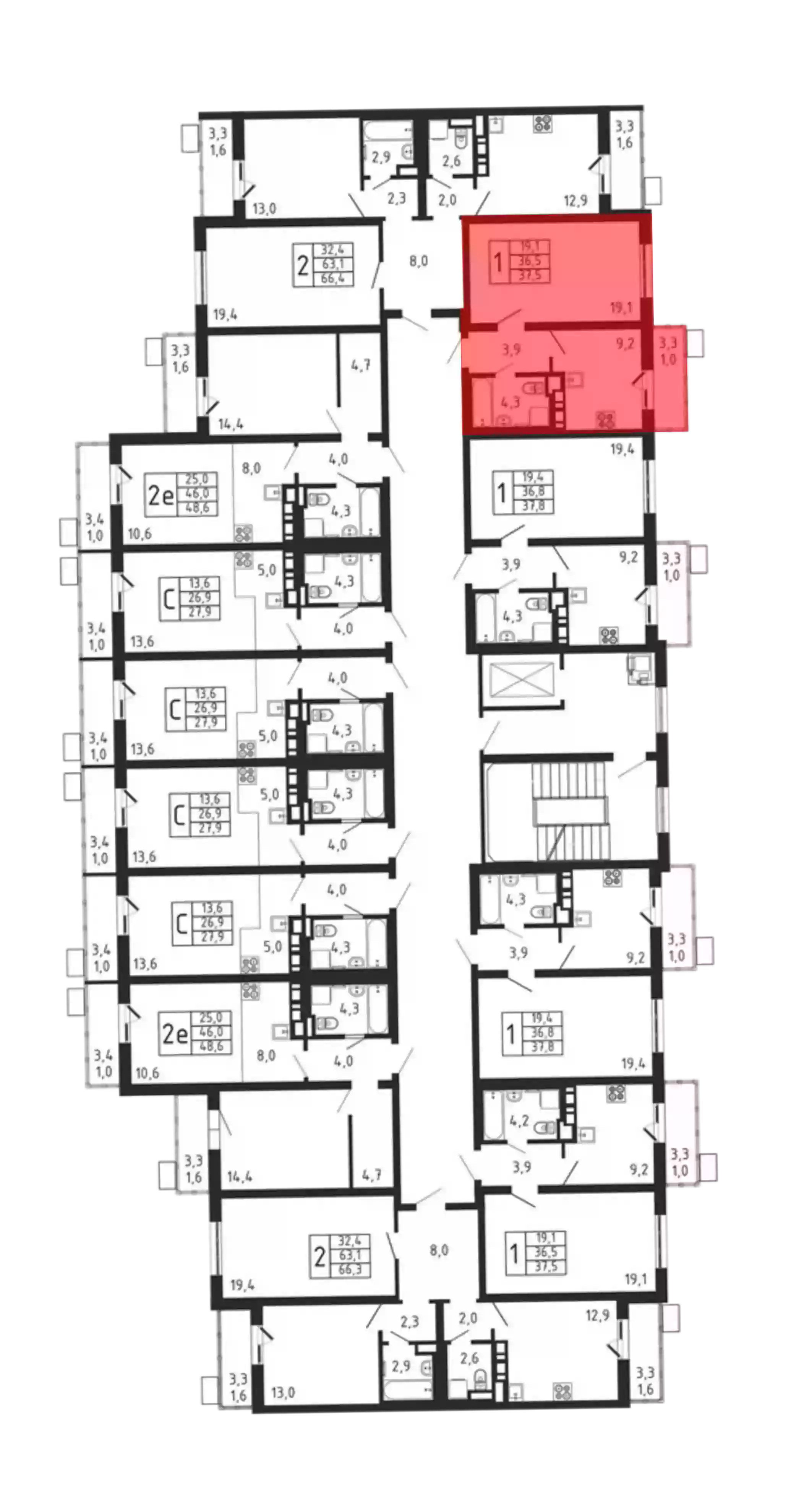 - Жилая площадь 19.1 м²
