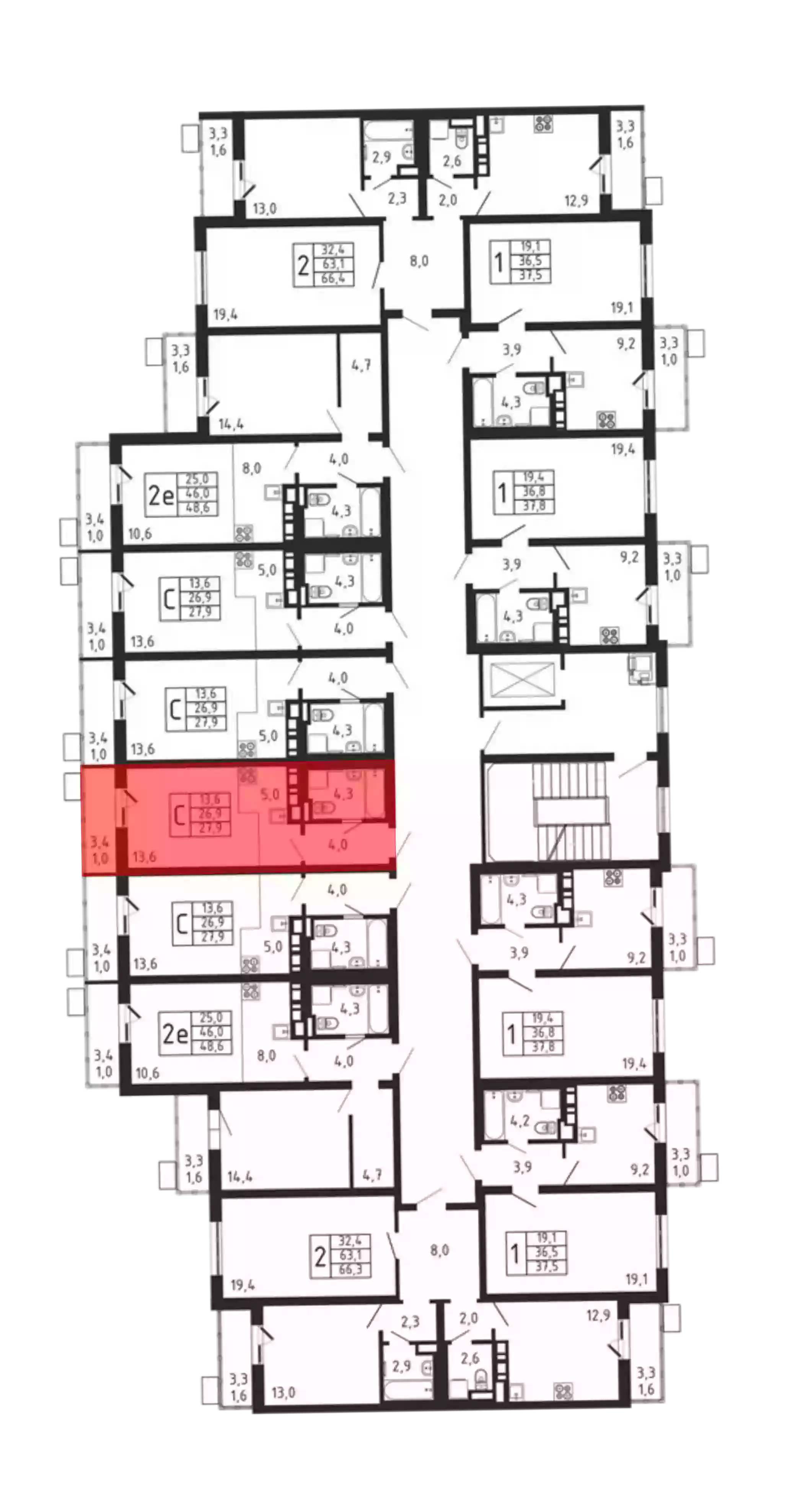 - Общая площадь 26.9 м²