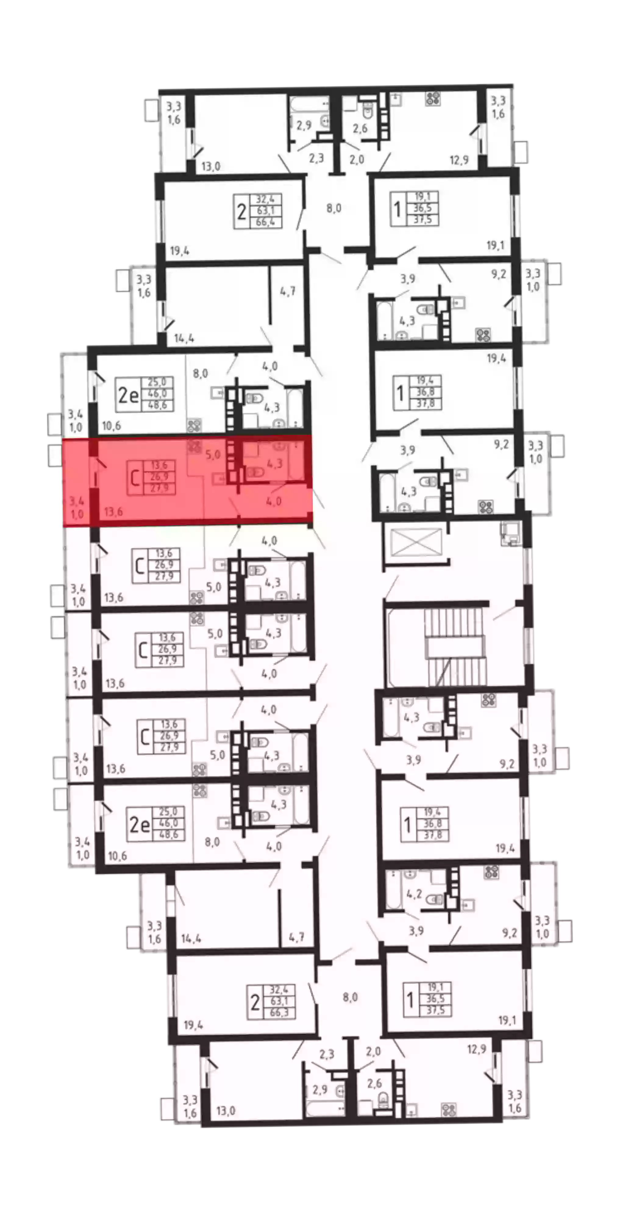 - Общая площадь 26.9 м²