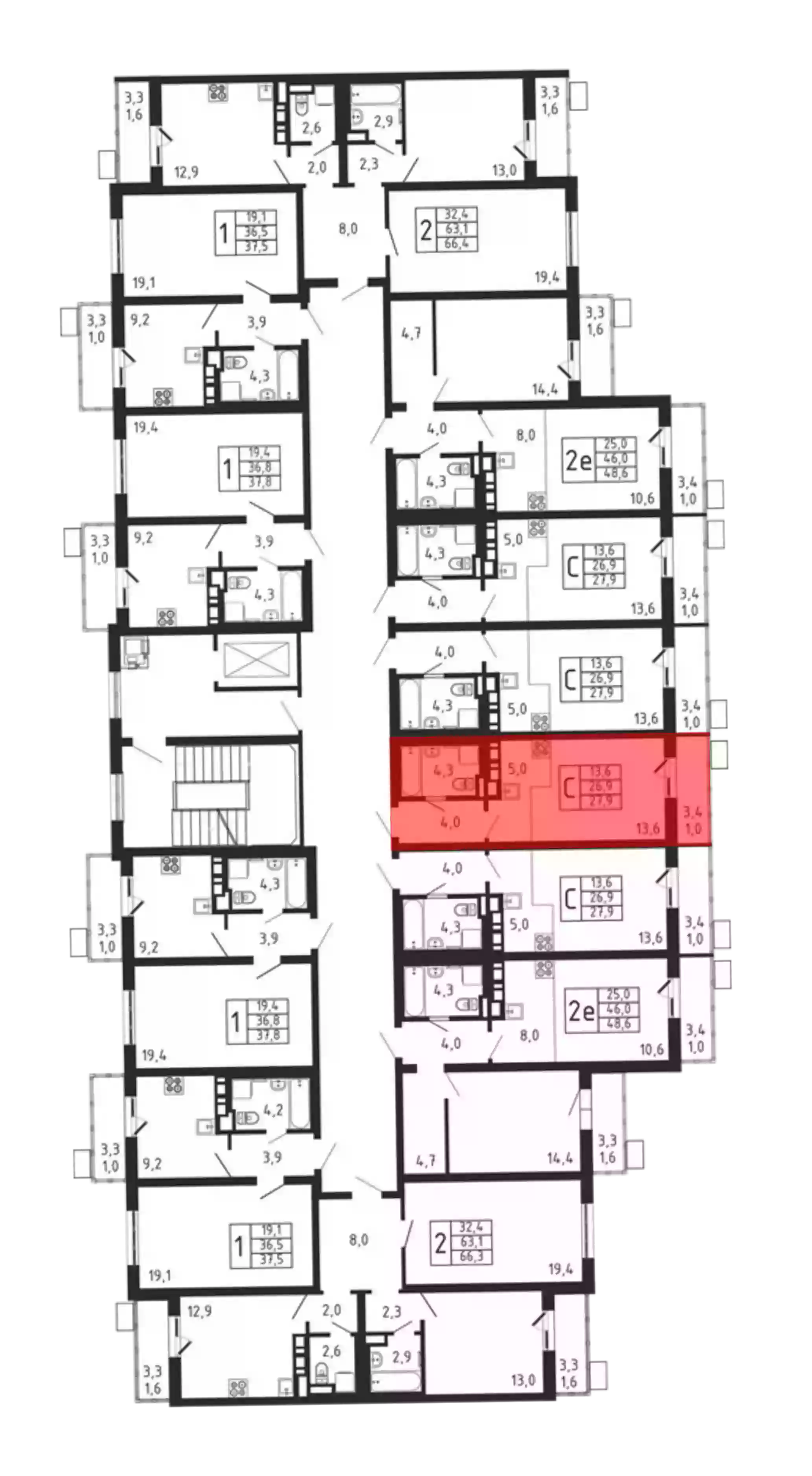 - Общая площадь 26.9 м²