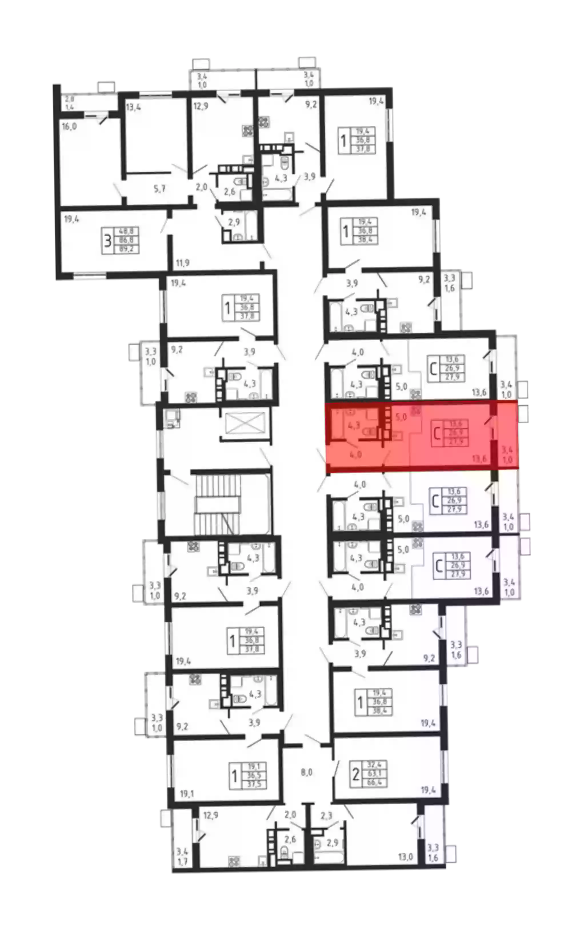 - Общая площадь 26.9 м²